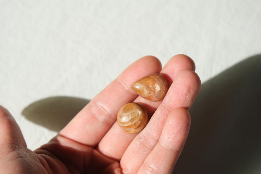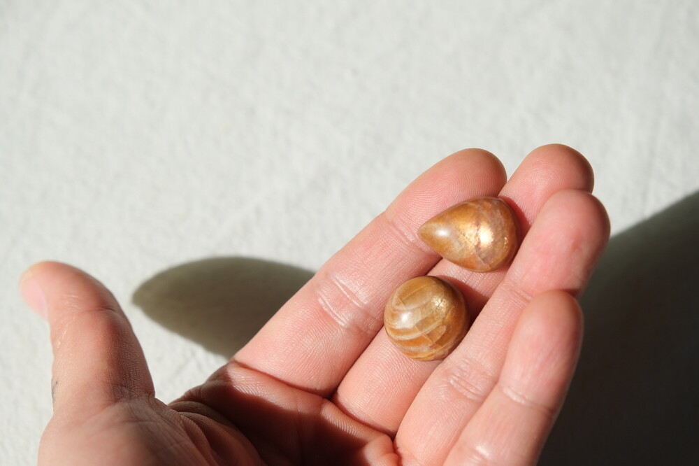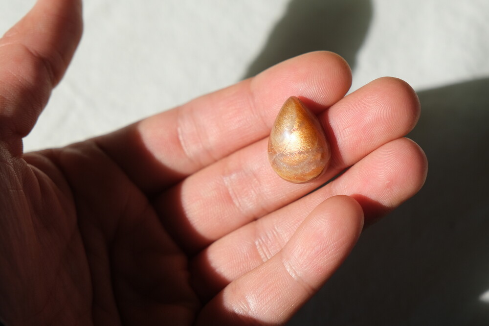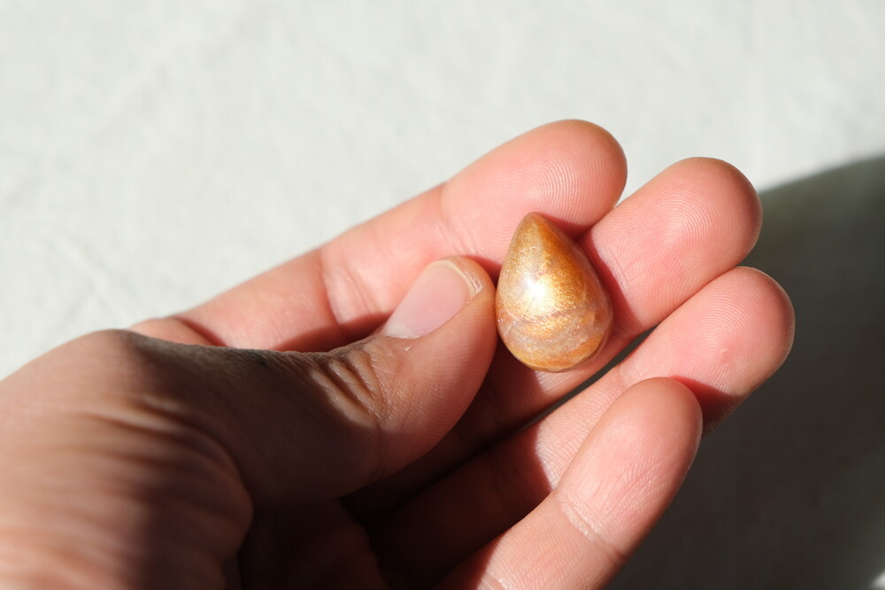 크랙이 두드러져 퀄리티가 낮지만 색상과 지니고 있는 빛이 예쁜 썬스톤입니다.