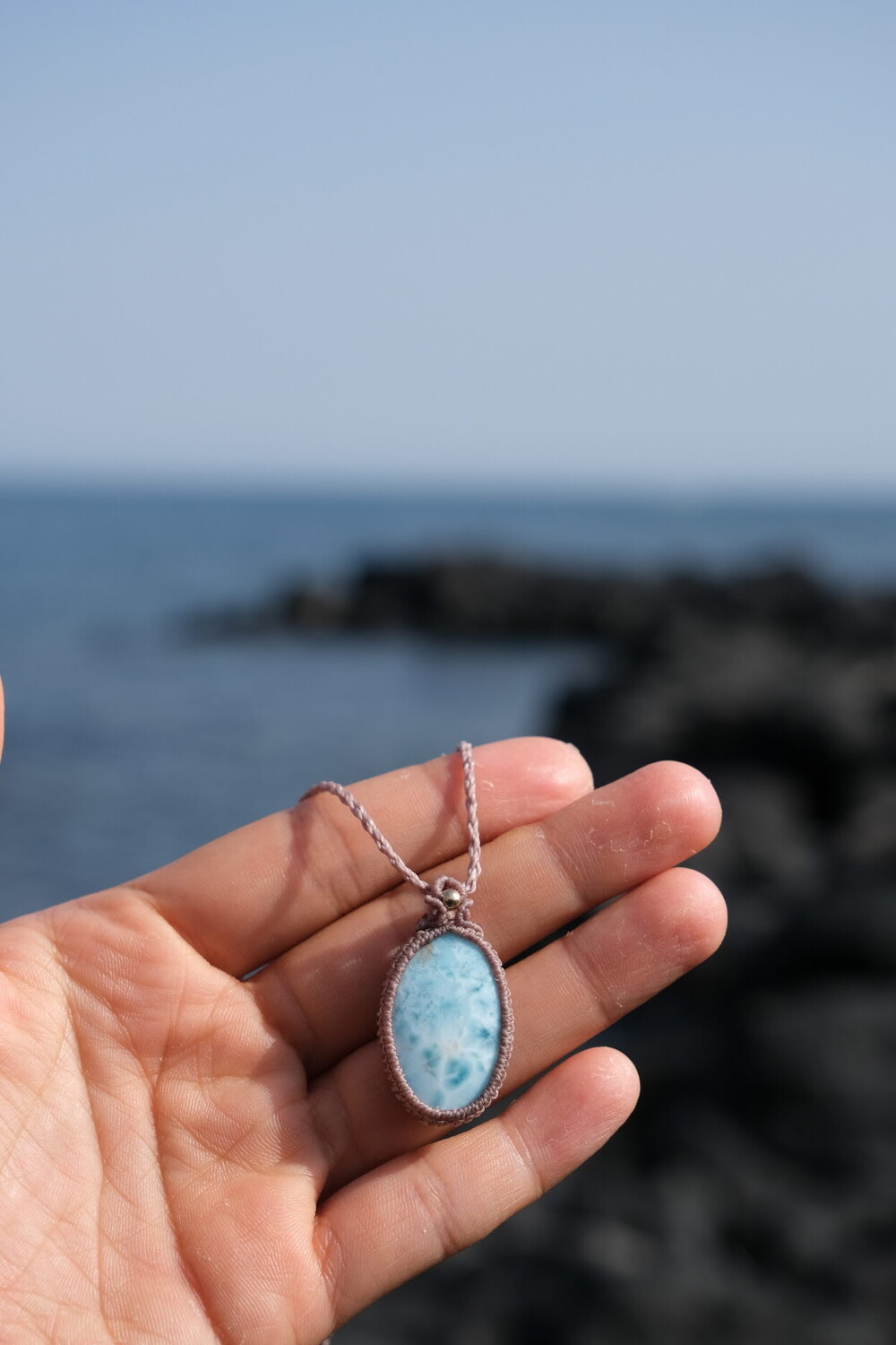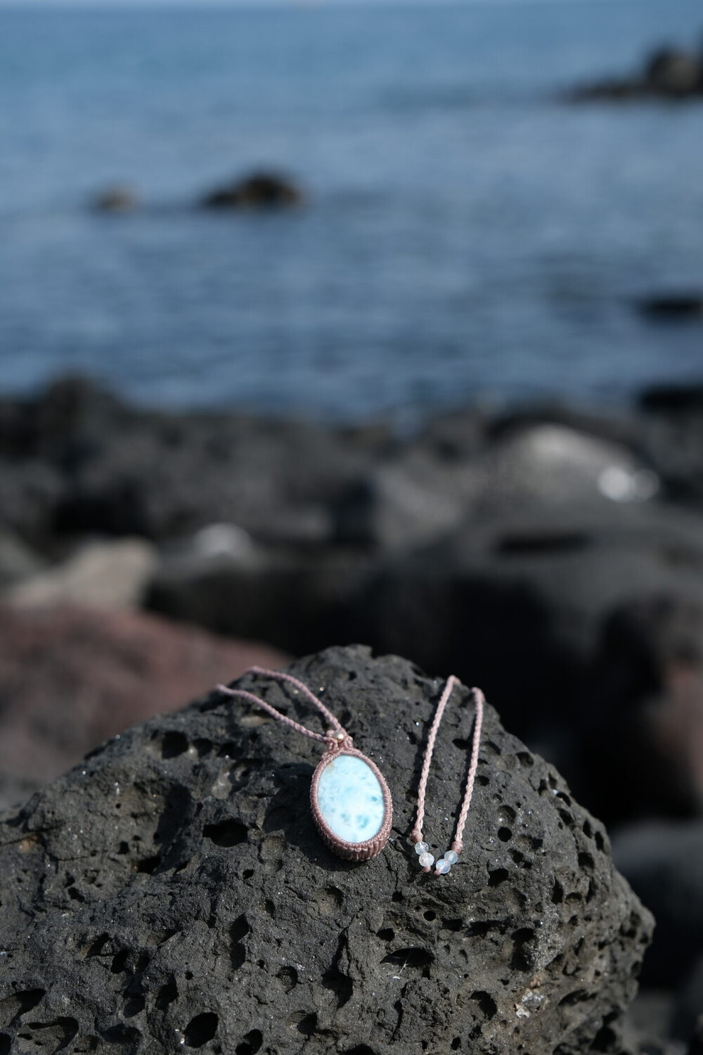 큼직한 크기의 라리마로 제작한 싱글래핑 목걸이입니다.