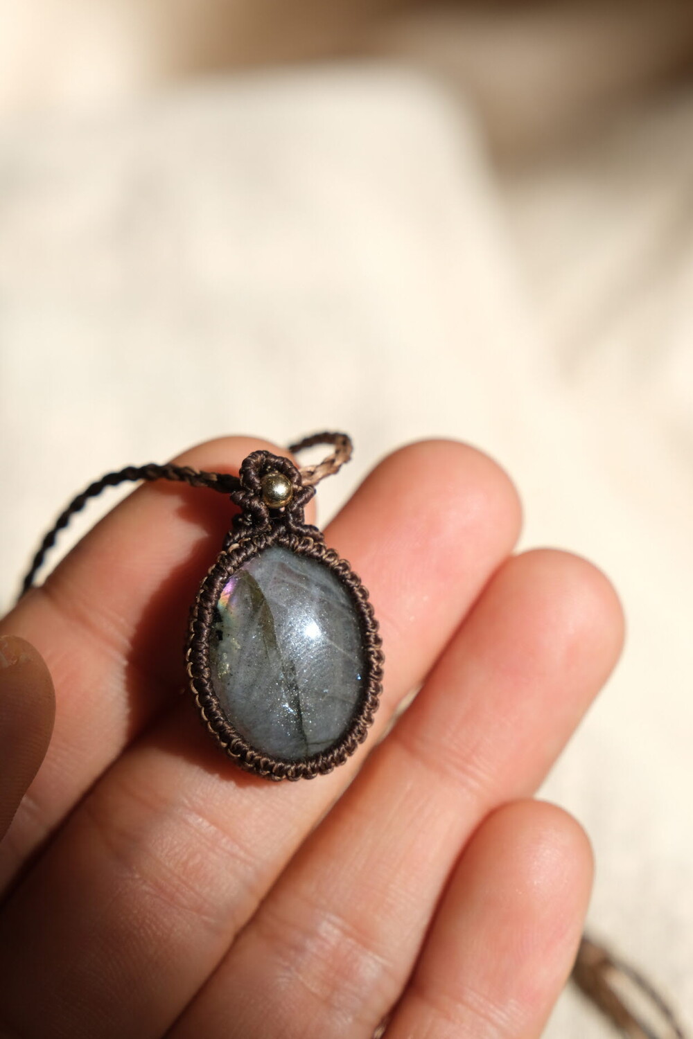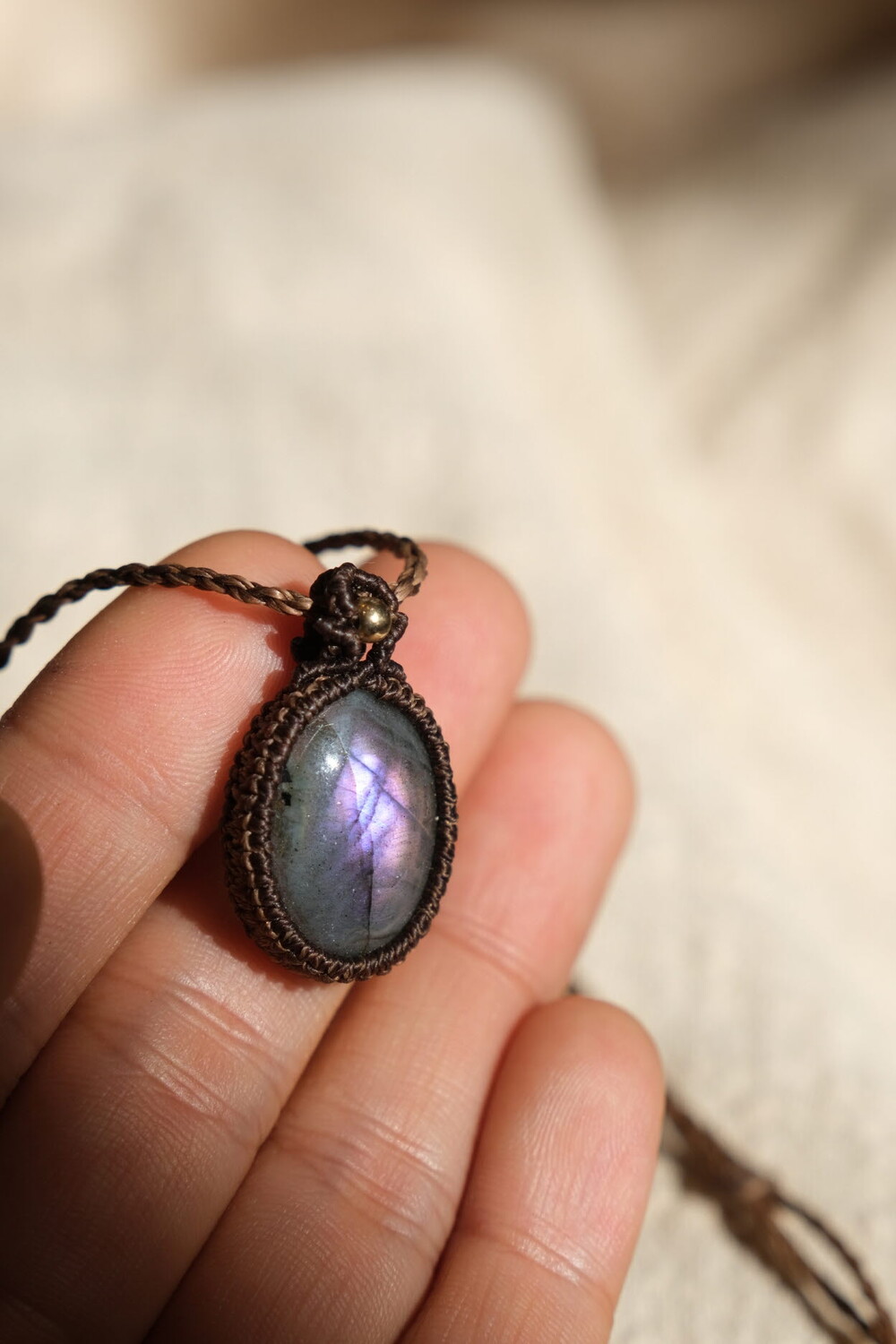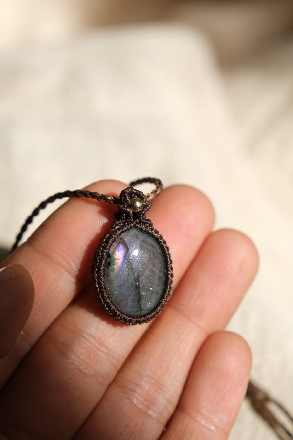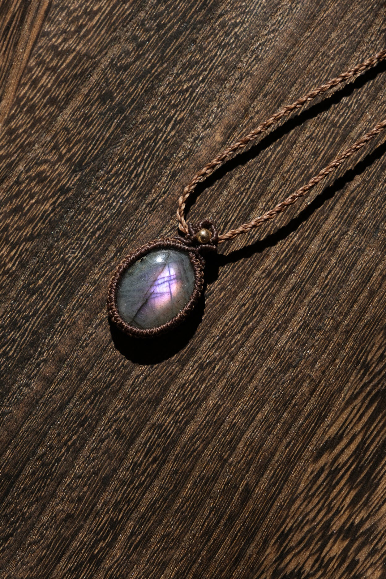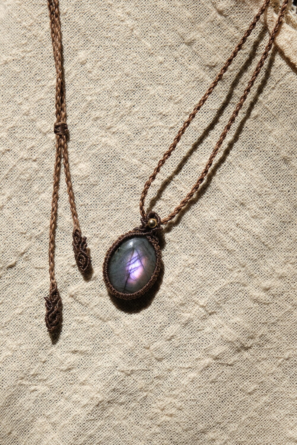 흔하지 않은 퍼플 광학의 라브라도라이트 목걸이입니다.