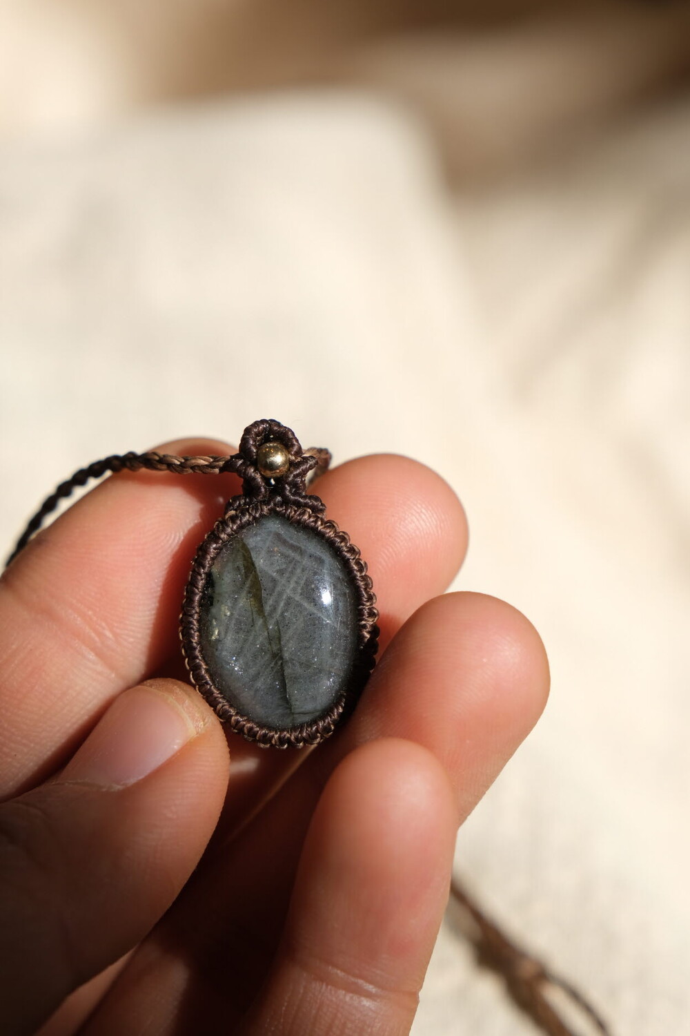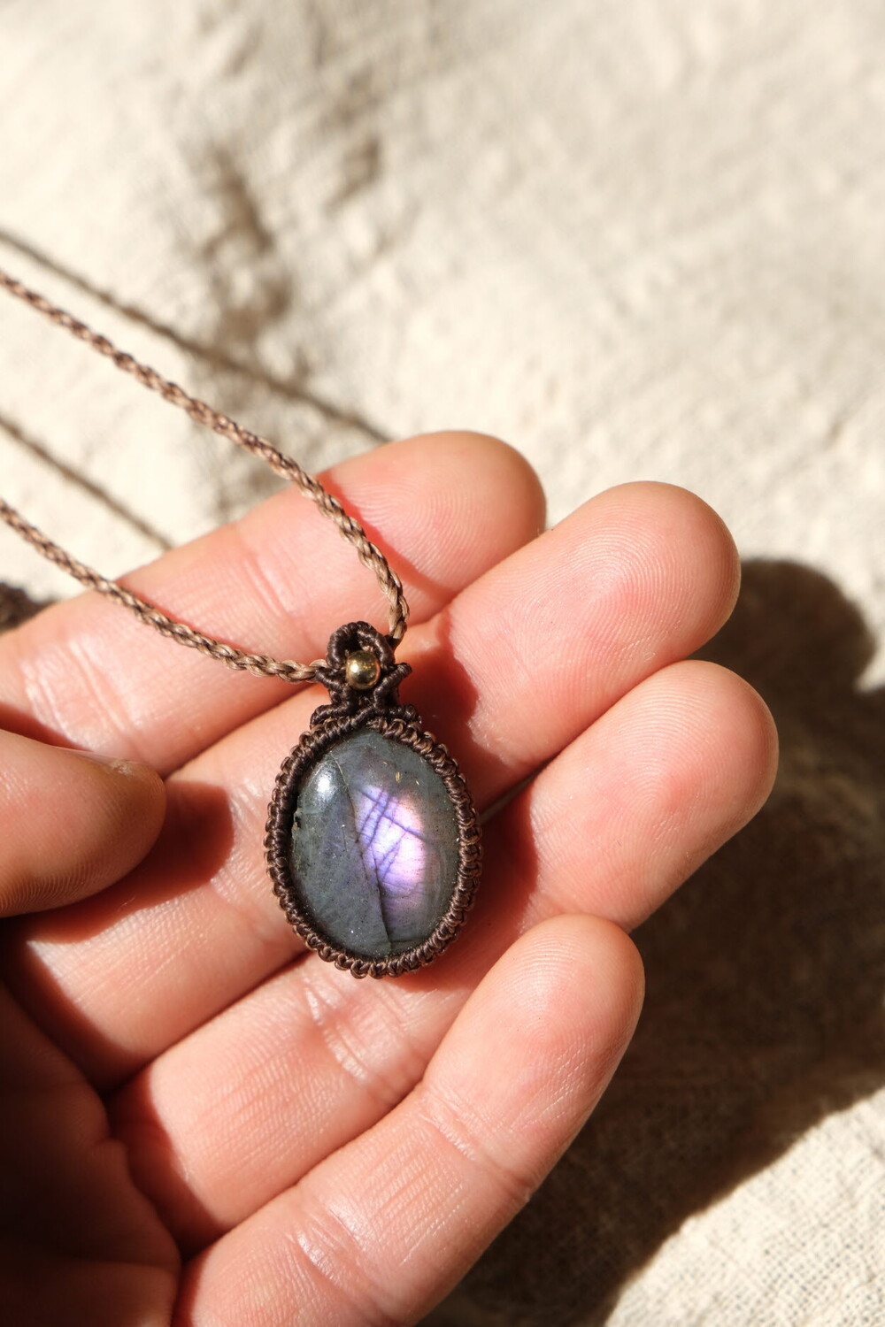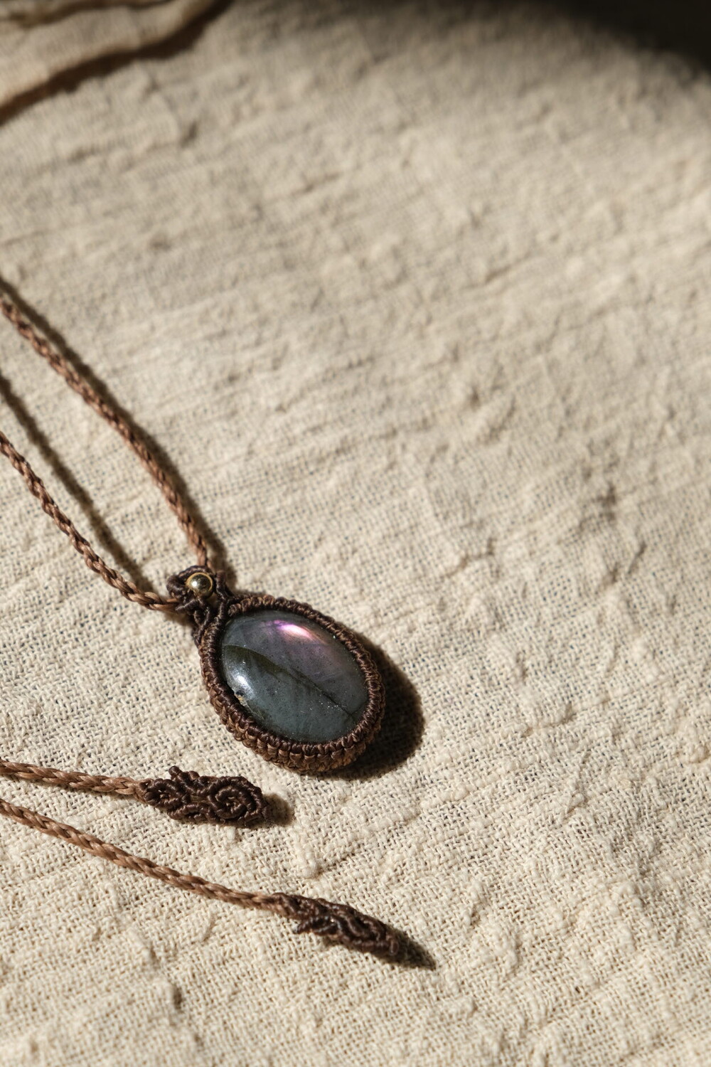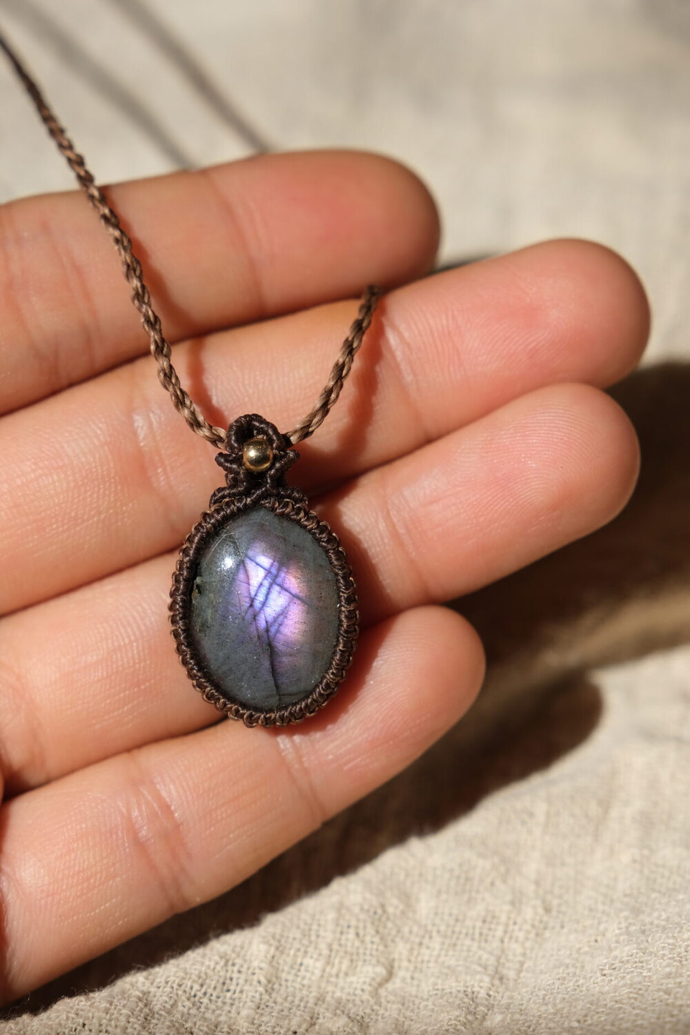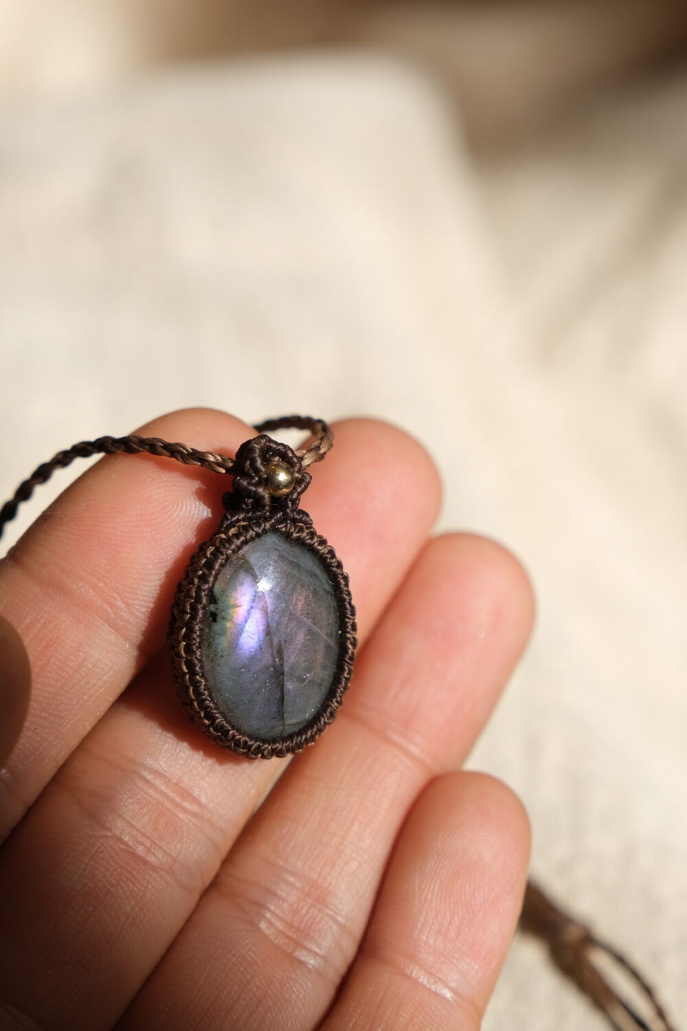 흔하지 않은 퍼플 광학의 라브라도라이트 목걸이입니다.
