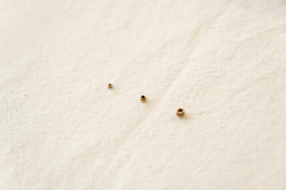 1mm 비즈이며, 0.7mm 한 가닥이 꽉 차게 들어갑니다.
