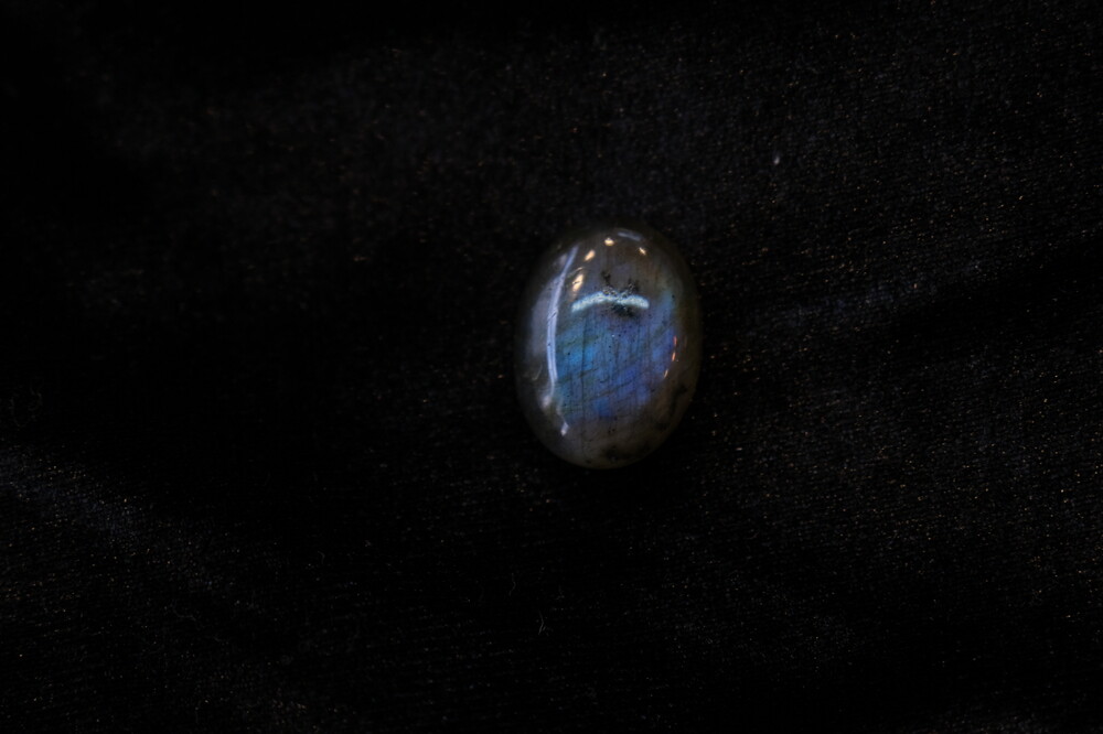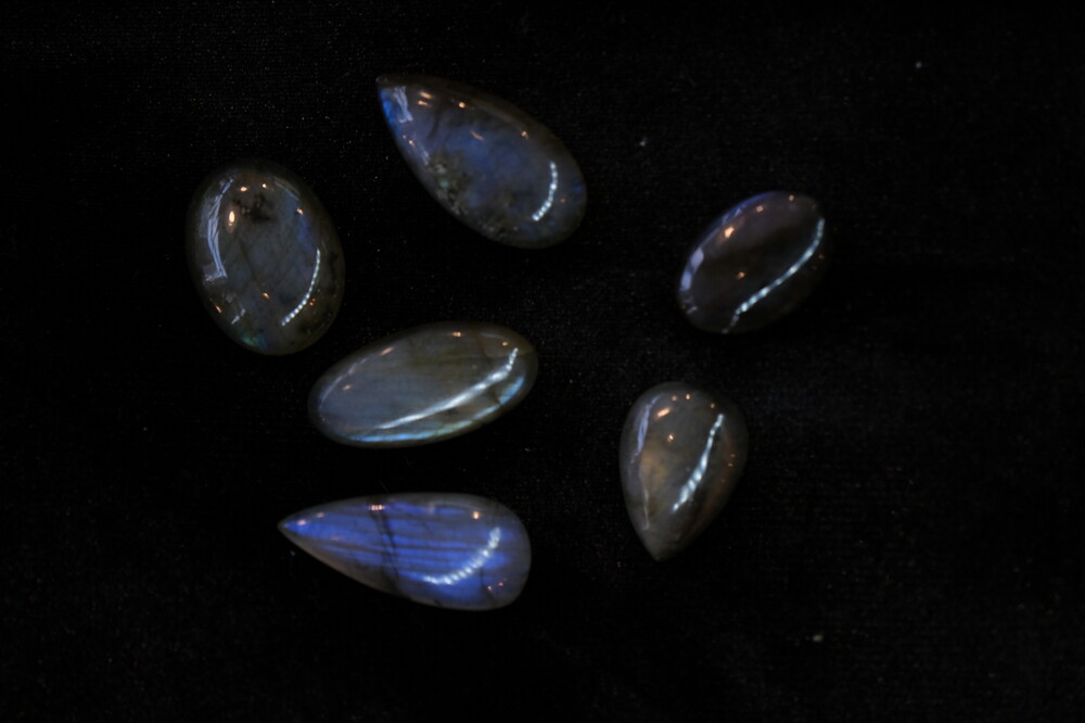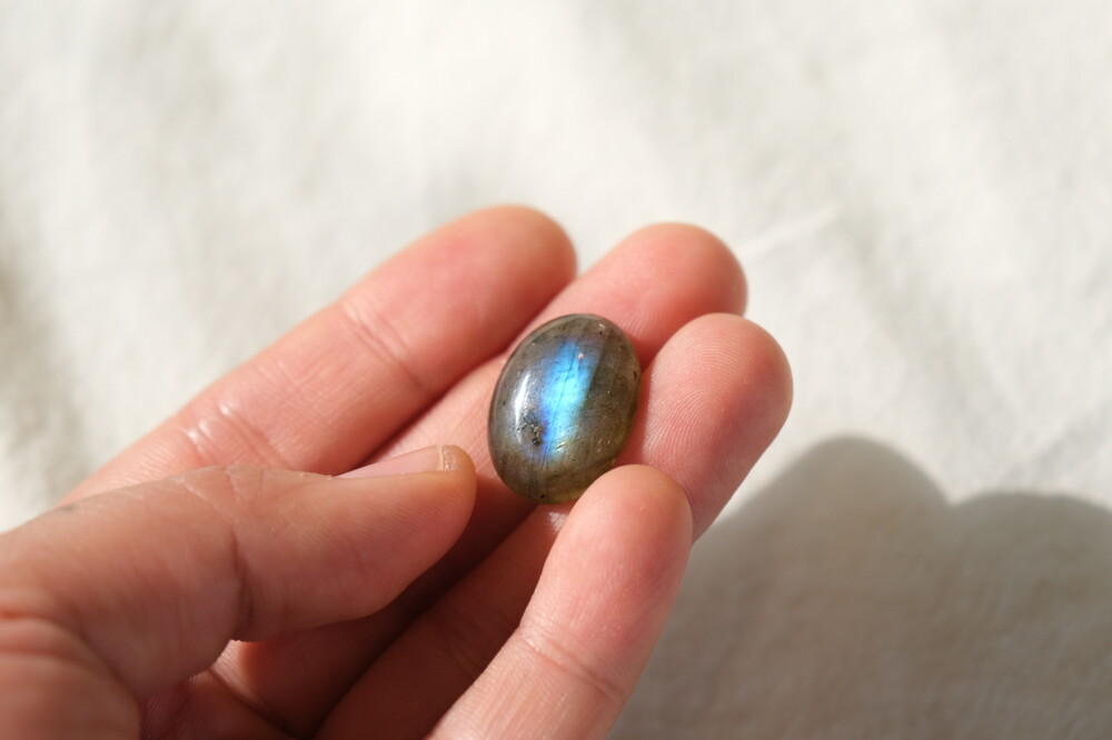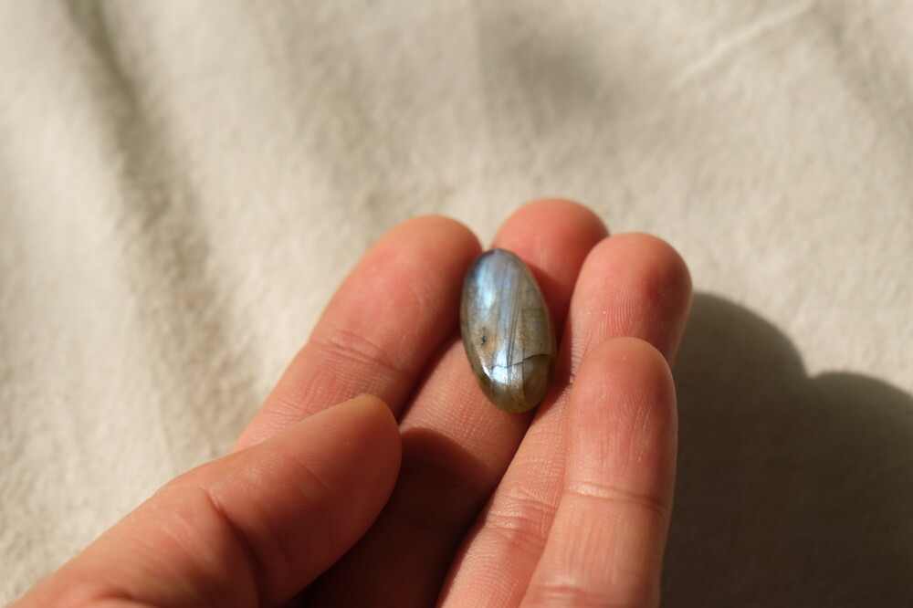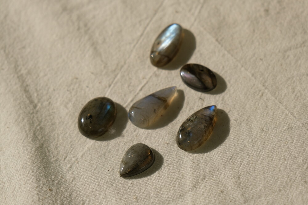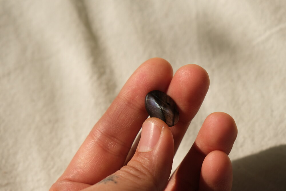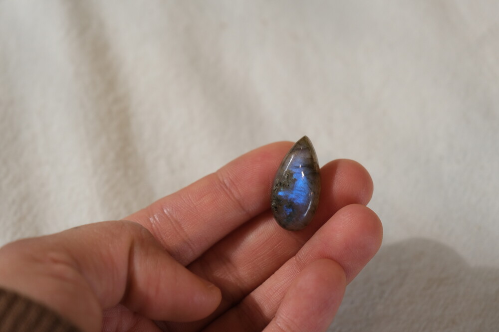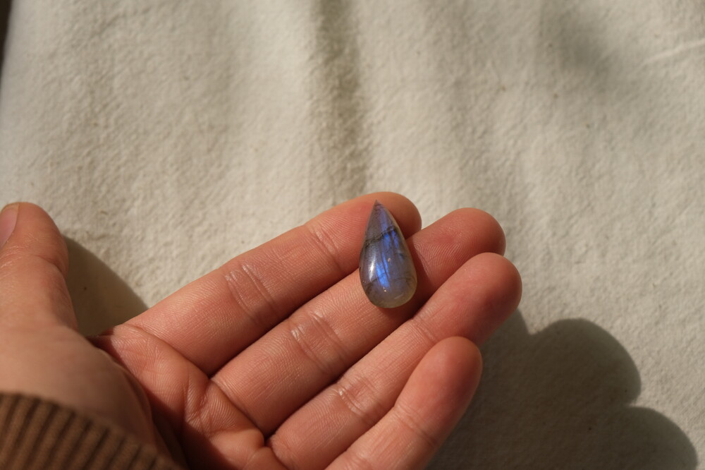 광학이 희미하거나 크랙이나 내포물이 두드러져 상대적으로 퀄리티가 낮은 라브라도라이트입니다.