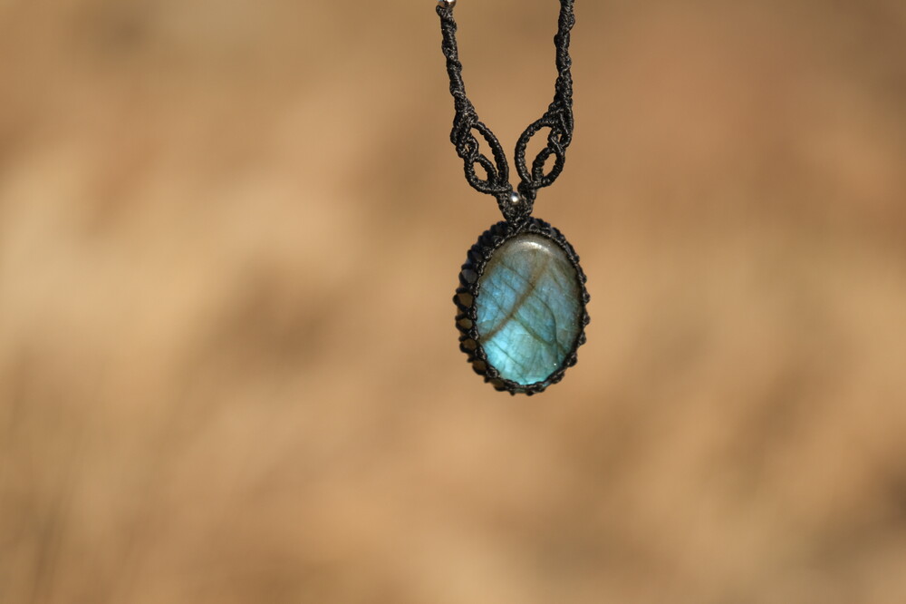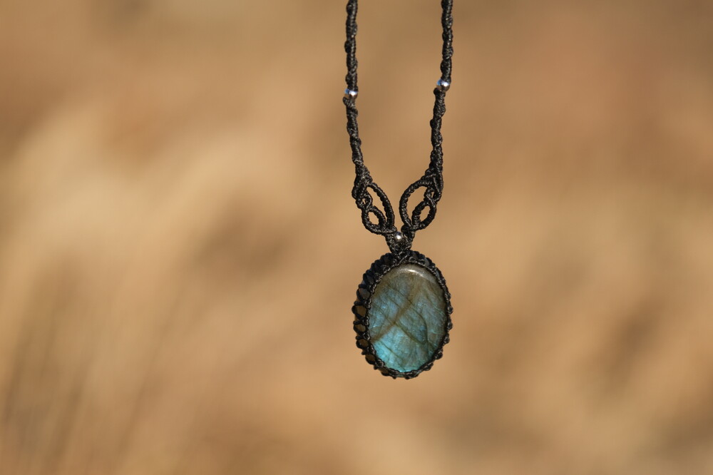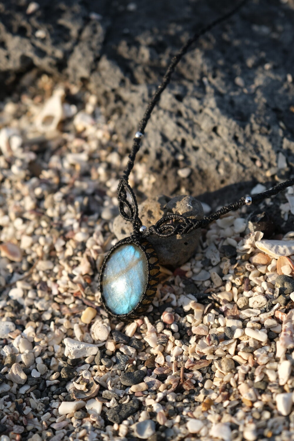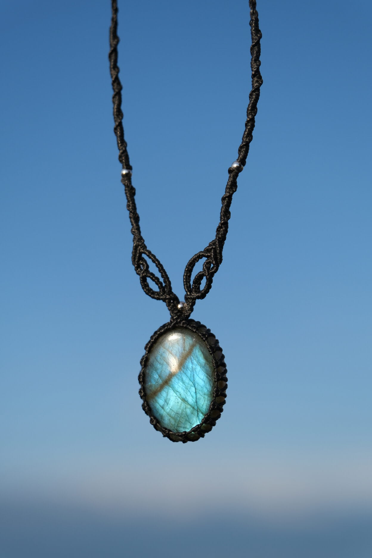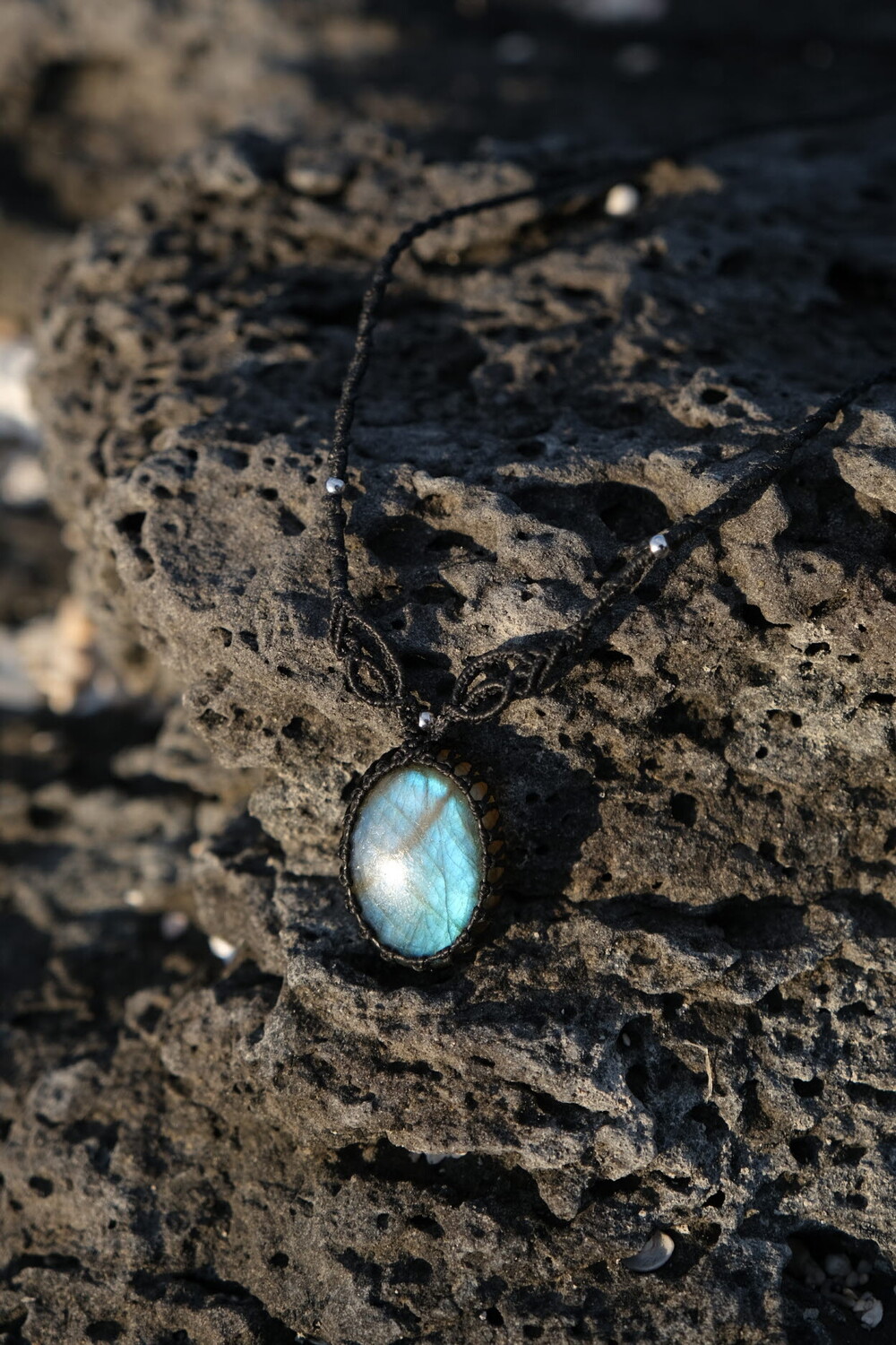 큼직한 크기의 래브라도라이트 원석으로 작업한 목걸이입니다.