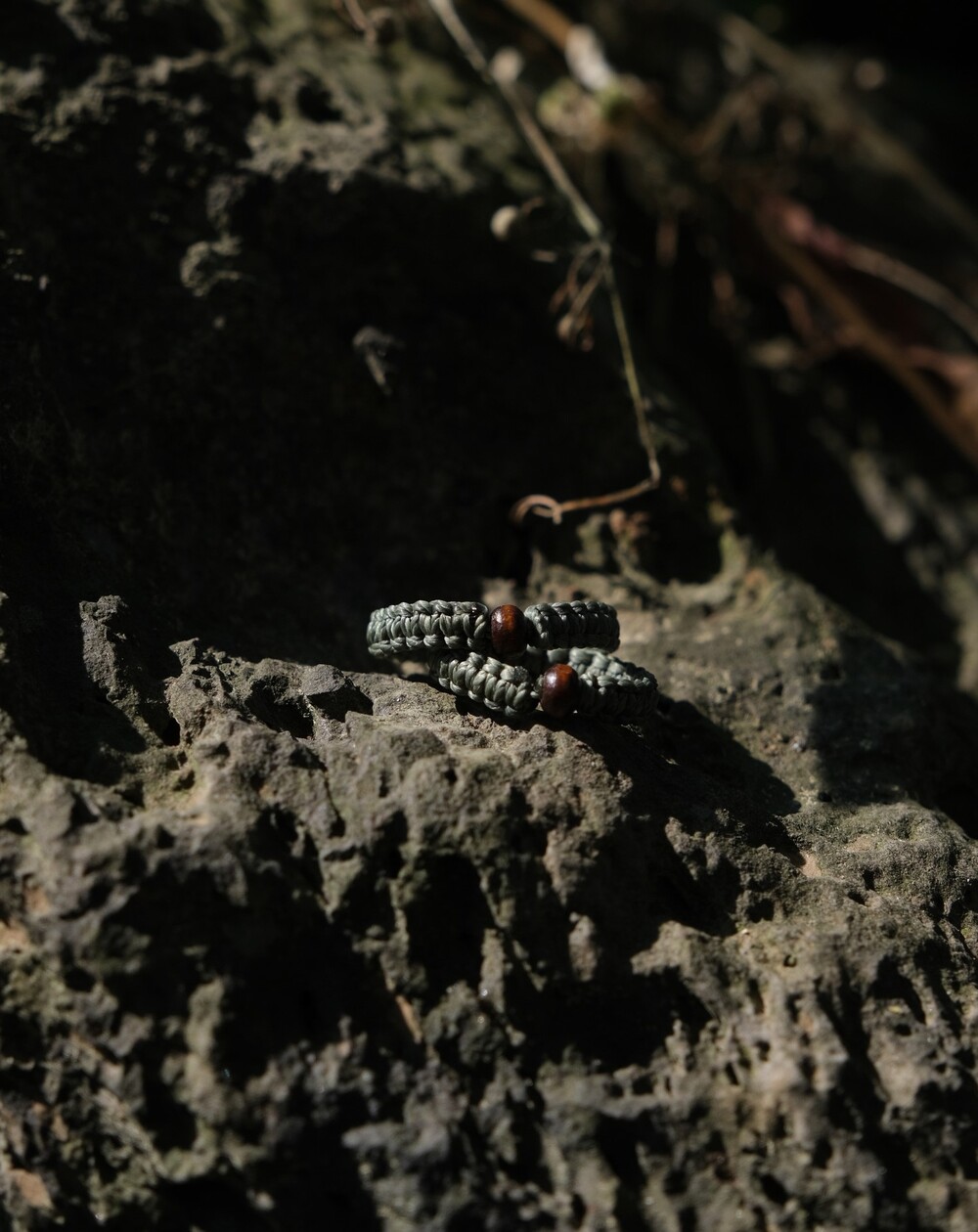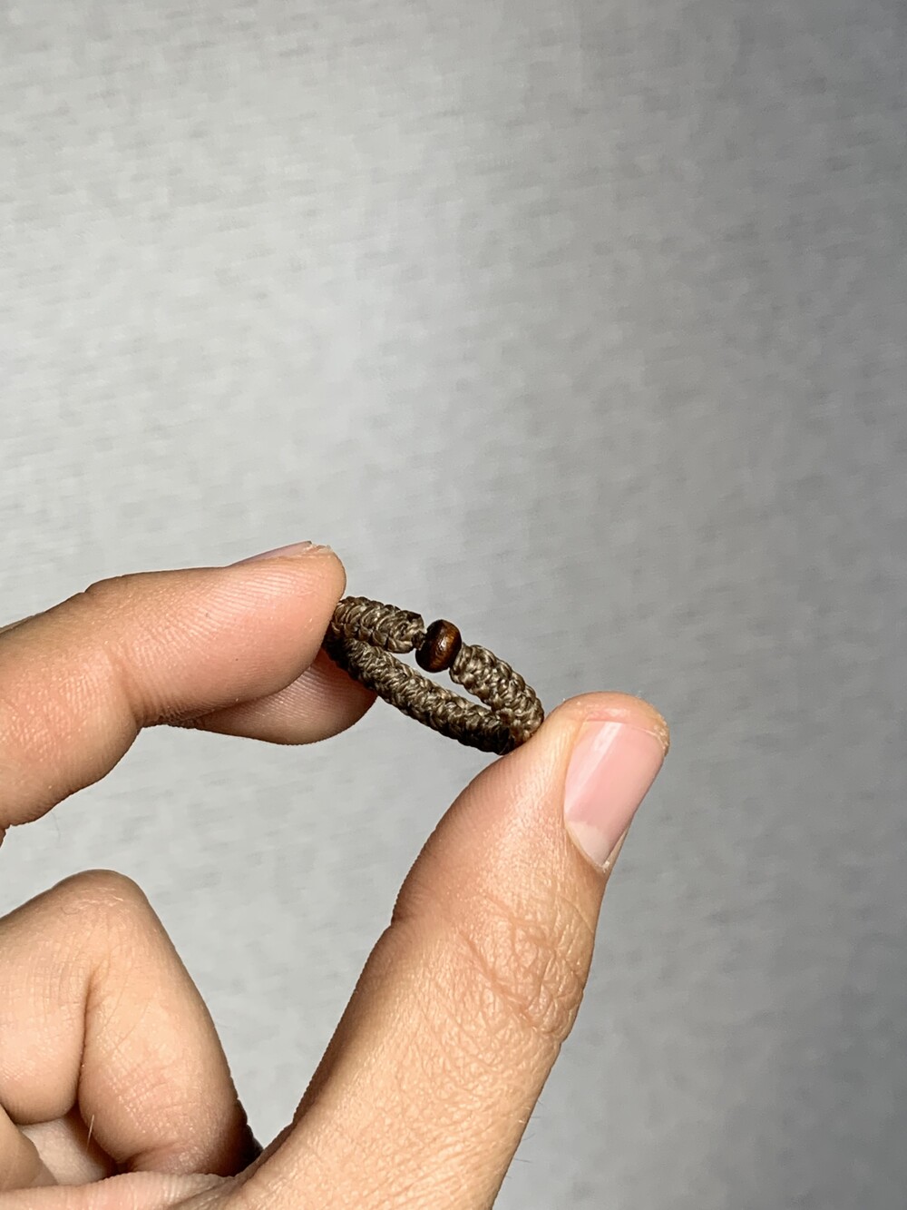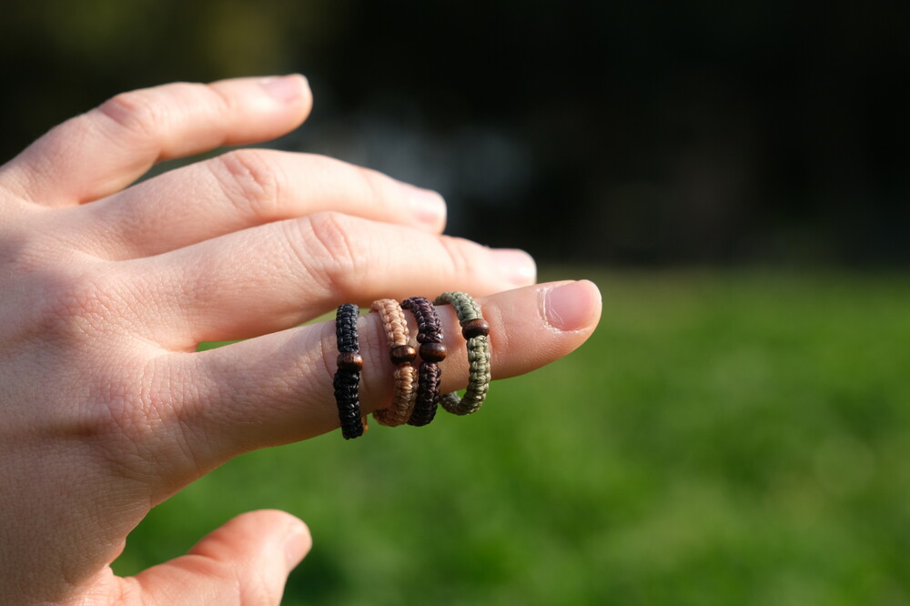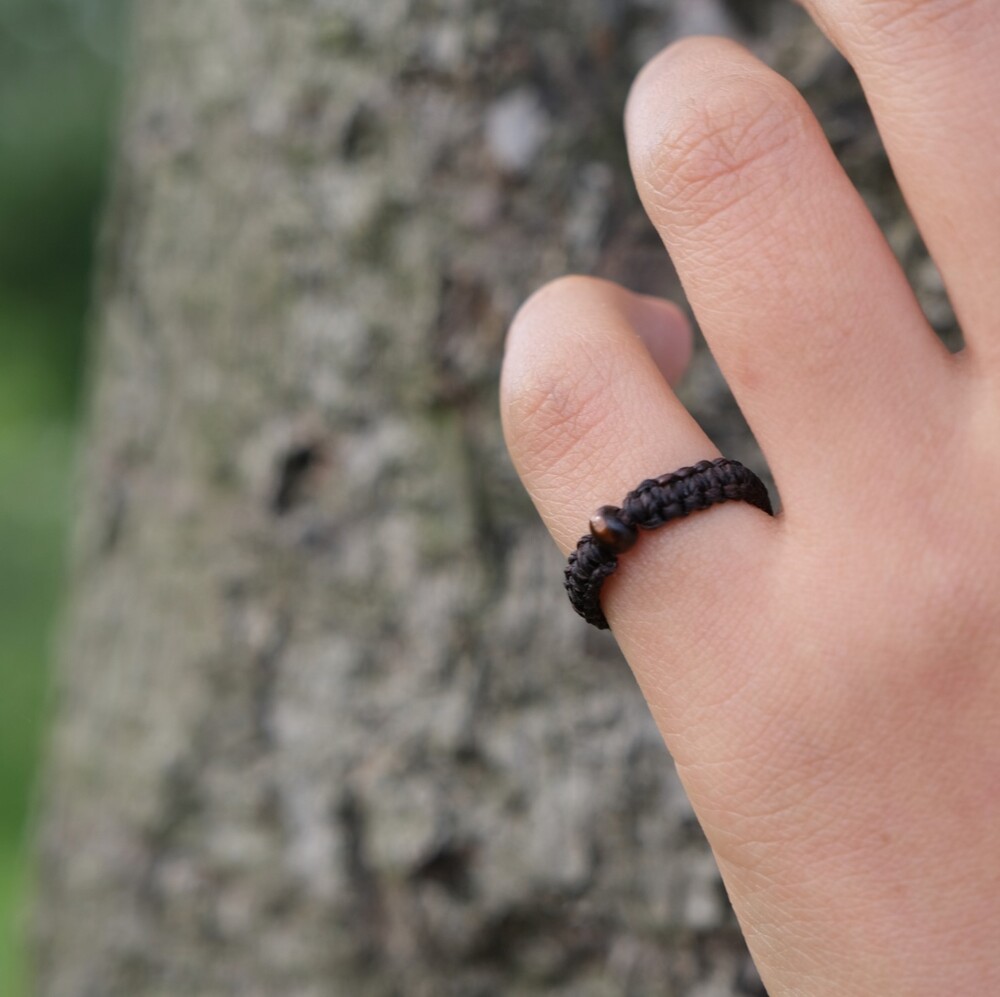우드비즈를 넣어 만든 평매듭 반지입니다.