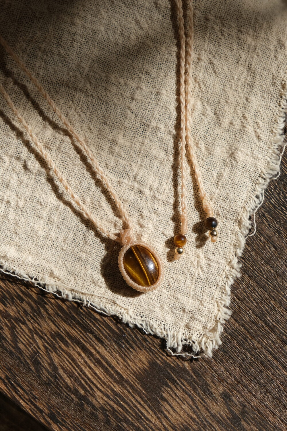 목걸이 줄 끝에는 호안석과 14k골드필드 비즈를 넣어 마감했습니다.