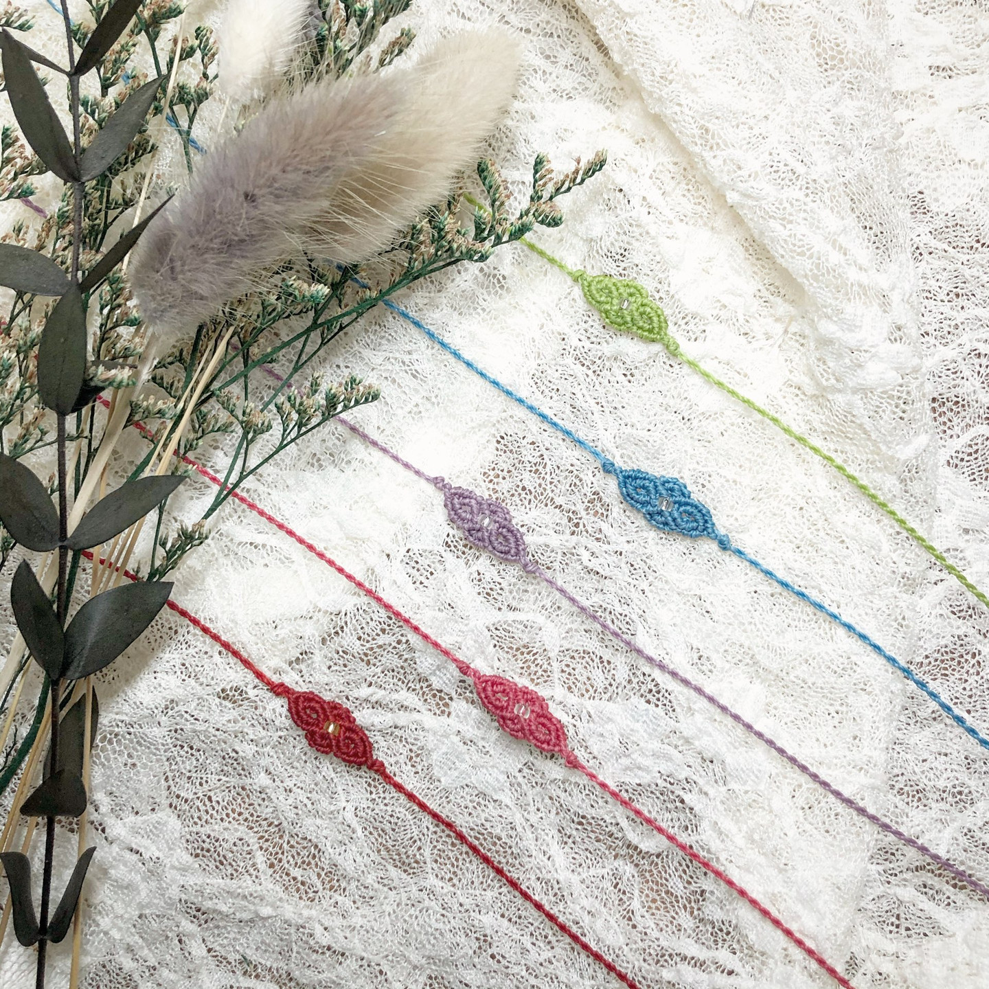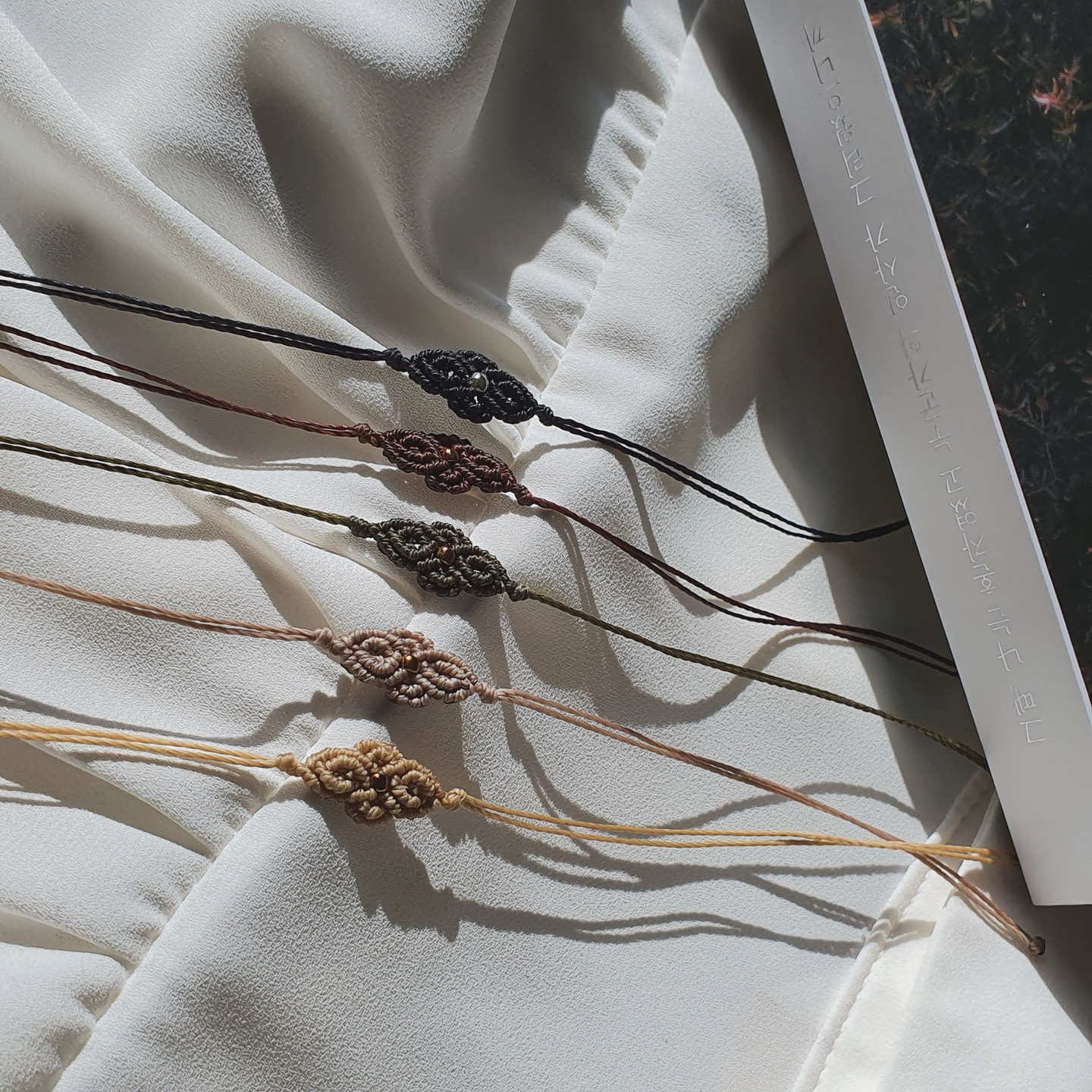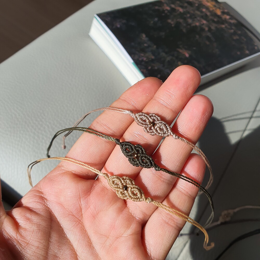 *브라질 왁스 폴리에스테르 마크라메 코드인 "린하시타" 0.7mm를 사용해 제작합니다.