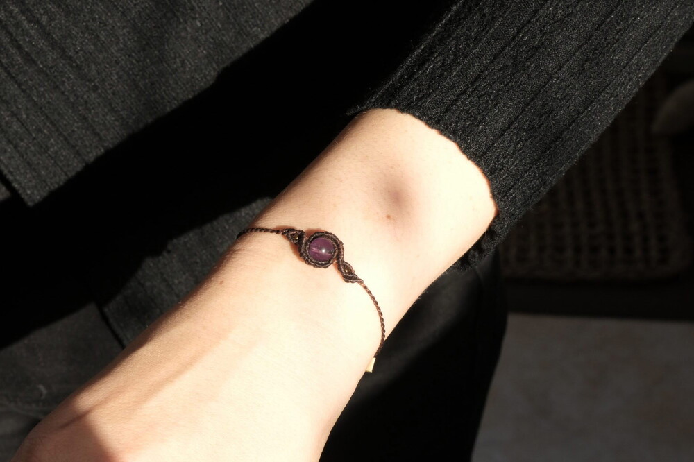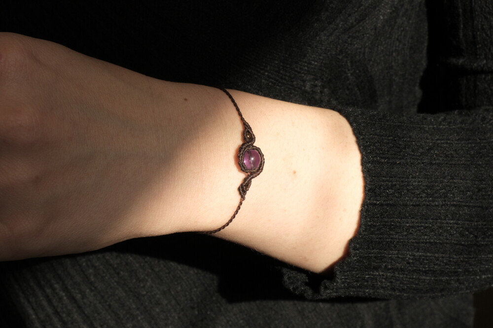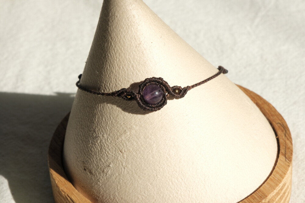 6mm크기의 자수정 구슬 원석과 린하시타 남미실 0.5mm로 제작된 클레프 팔찌입니다.
