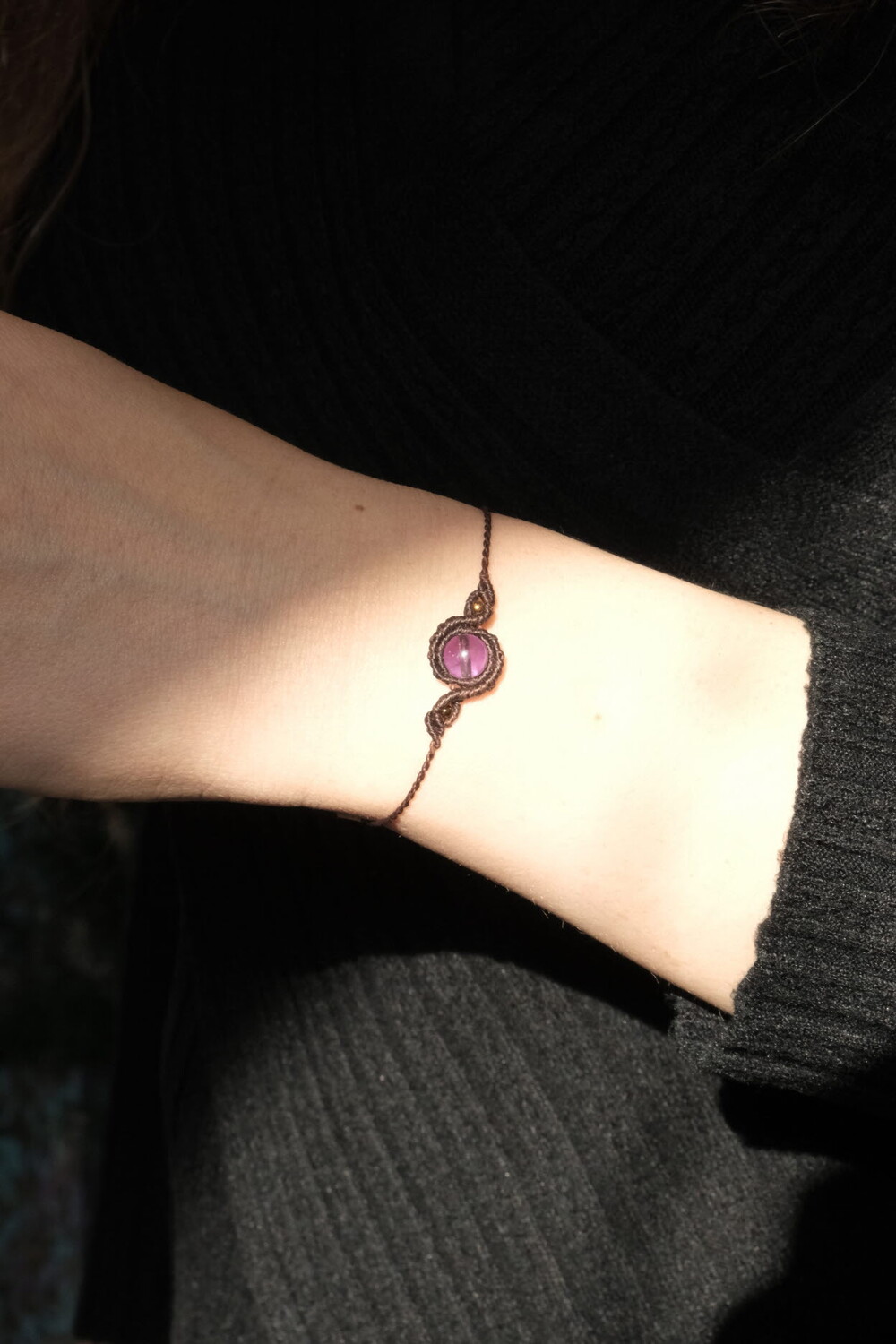*길이 조절 매듭이 2개 있는 작품으로 팔목에 밀착해서 착용 가능합니다.