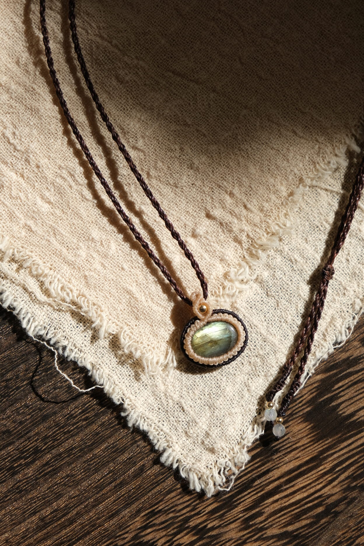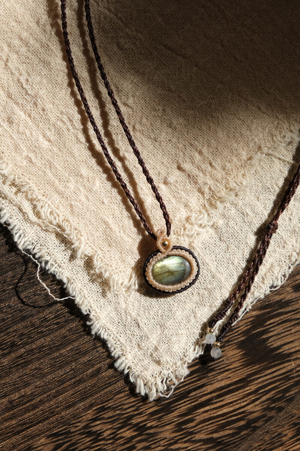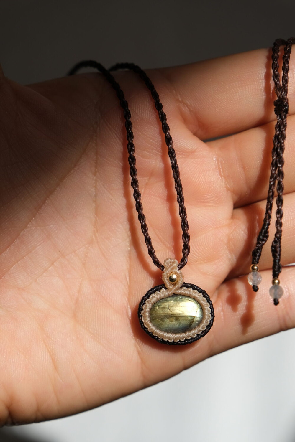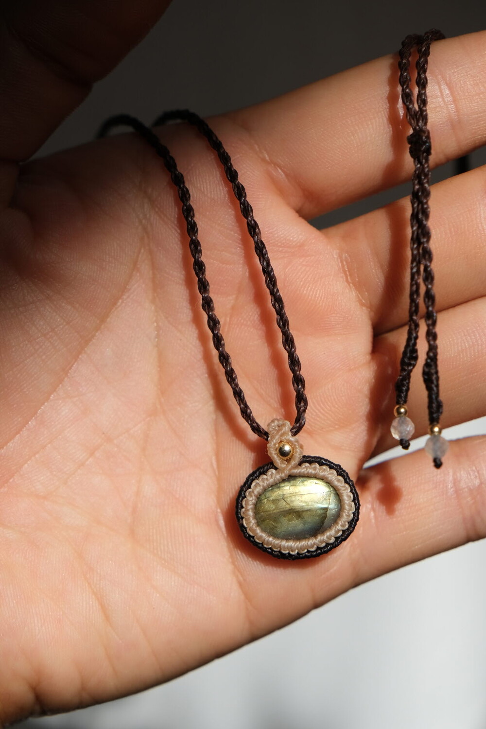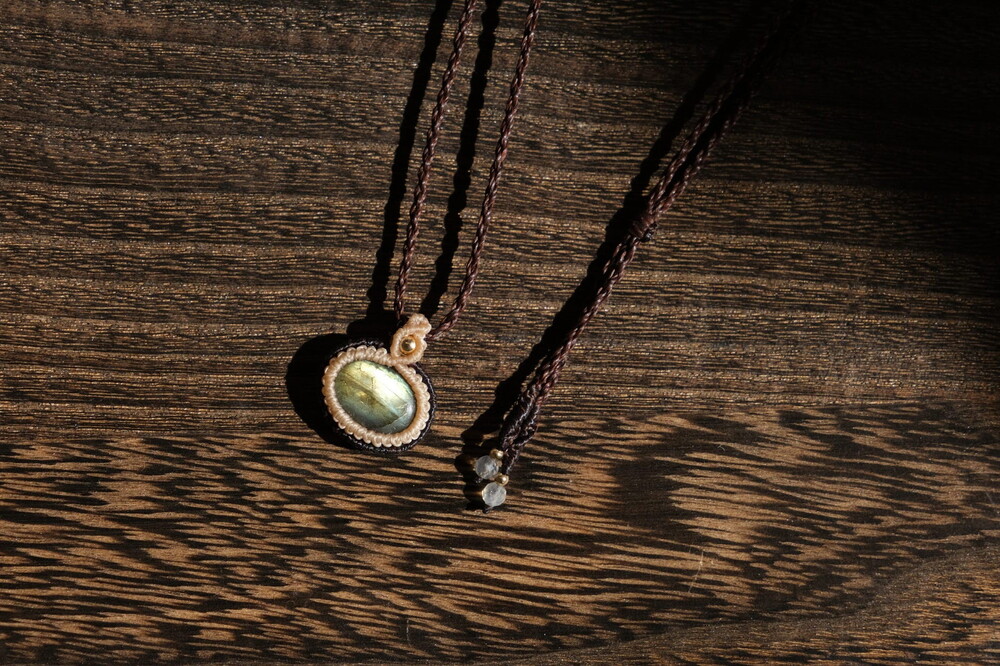 투 톤으로 감싼 라브라도라이트 목걸이입니다.