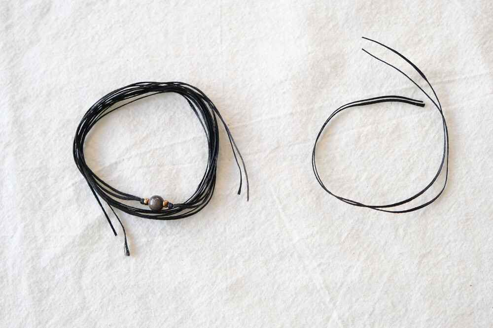 비즈, 원석이 90cm실 두 가닥에 끼워진채로 제공됩니다.