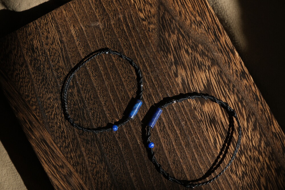 두꺼운 실로 만든 버전과 얇은 실로 만든 버전으로 제작해 커플로 착용해도 좋은 팔찌입니다.