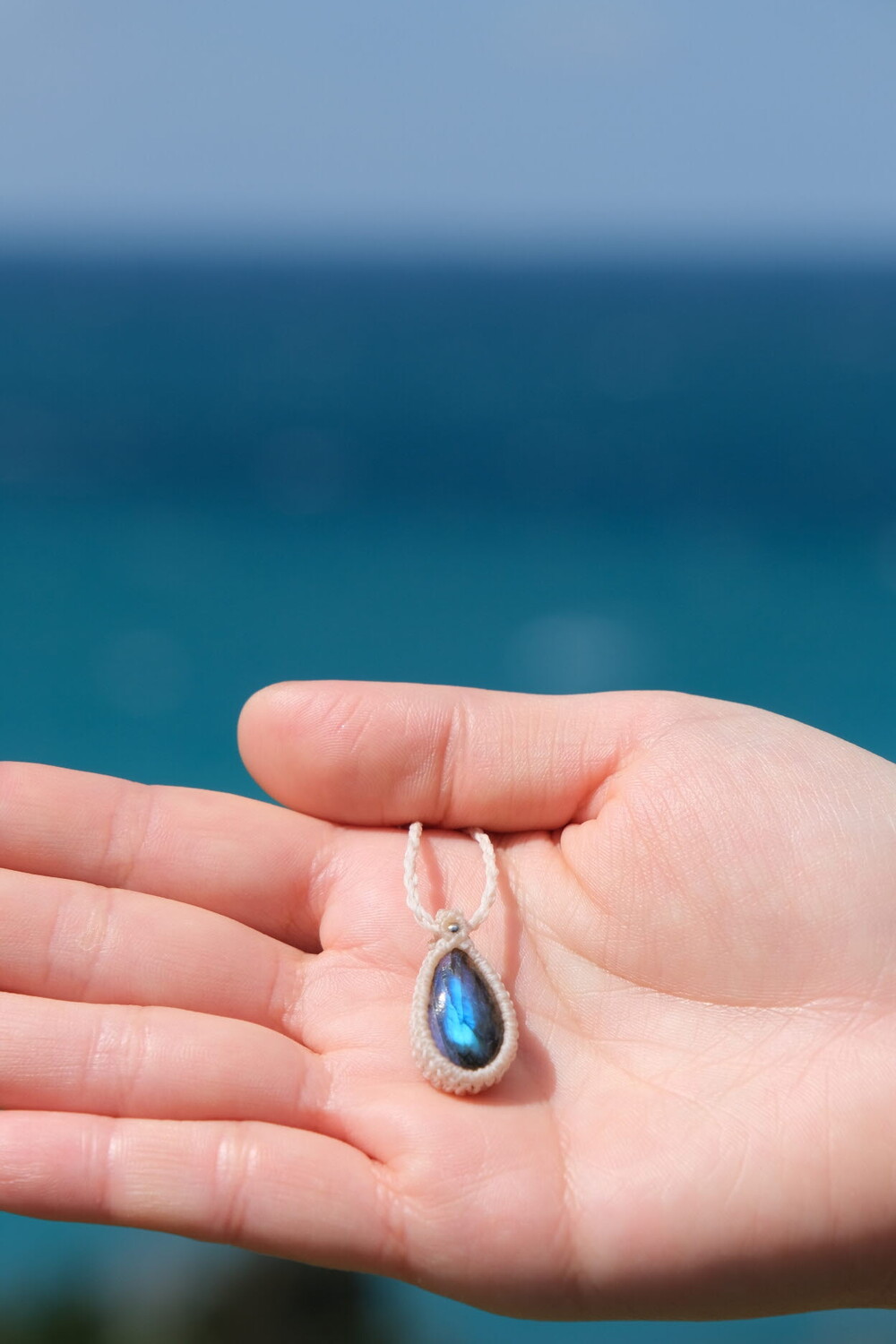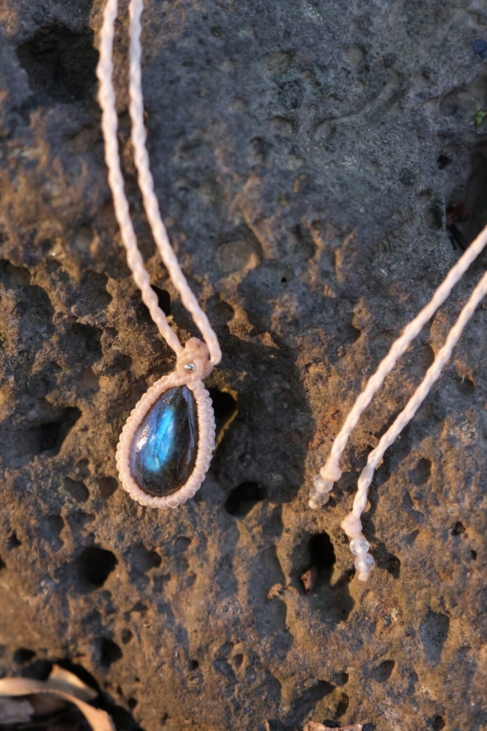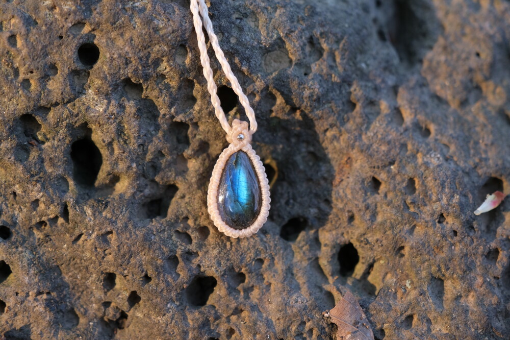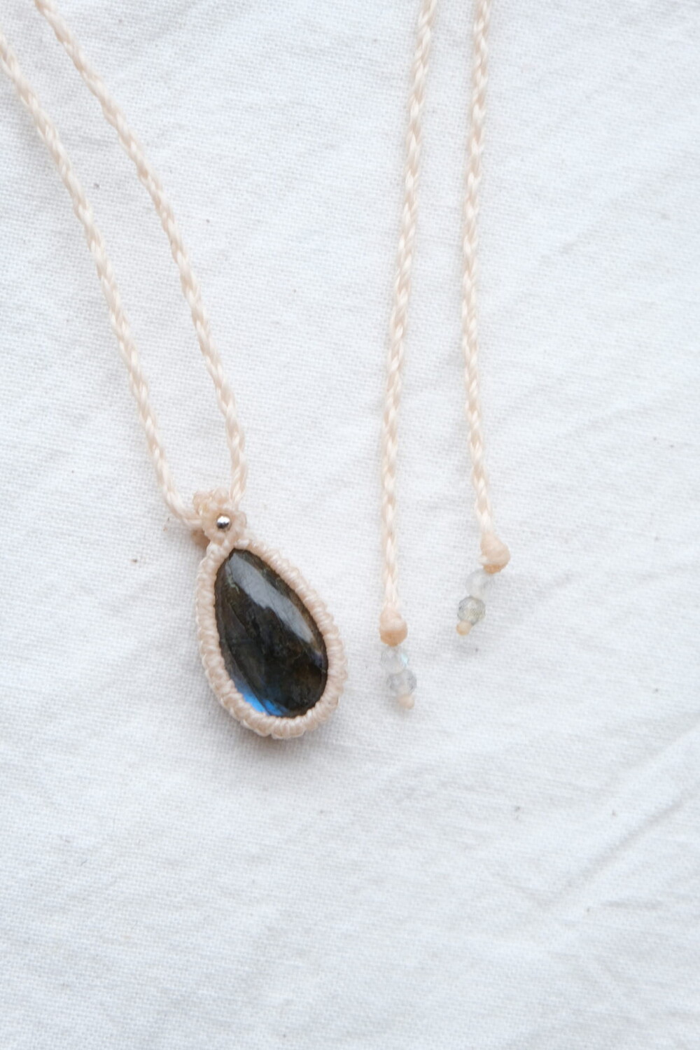물방울 모양 딥블루 라브라도라이트 싱글래핑 목걸이