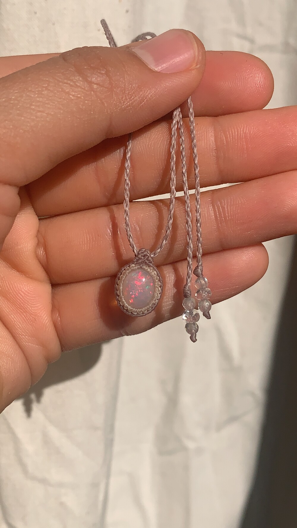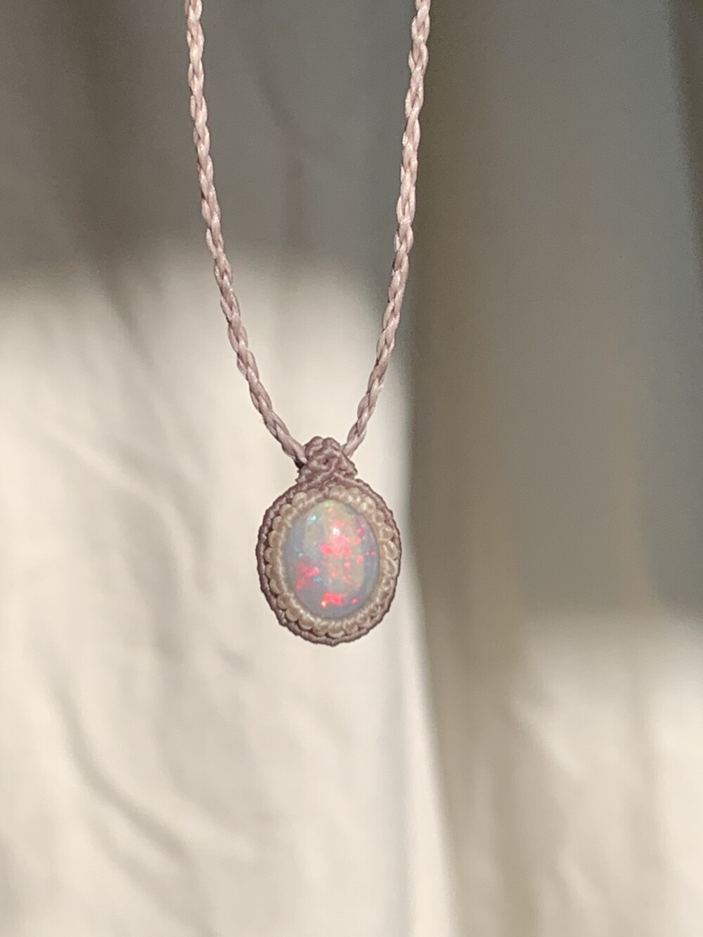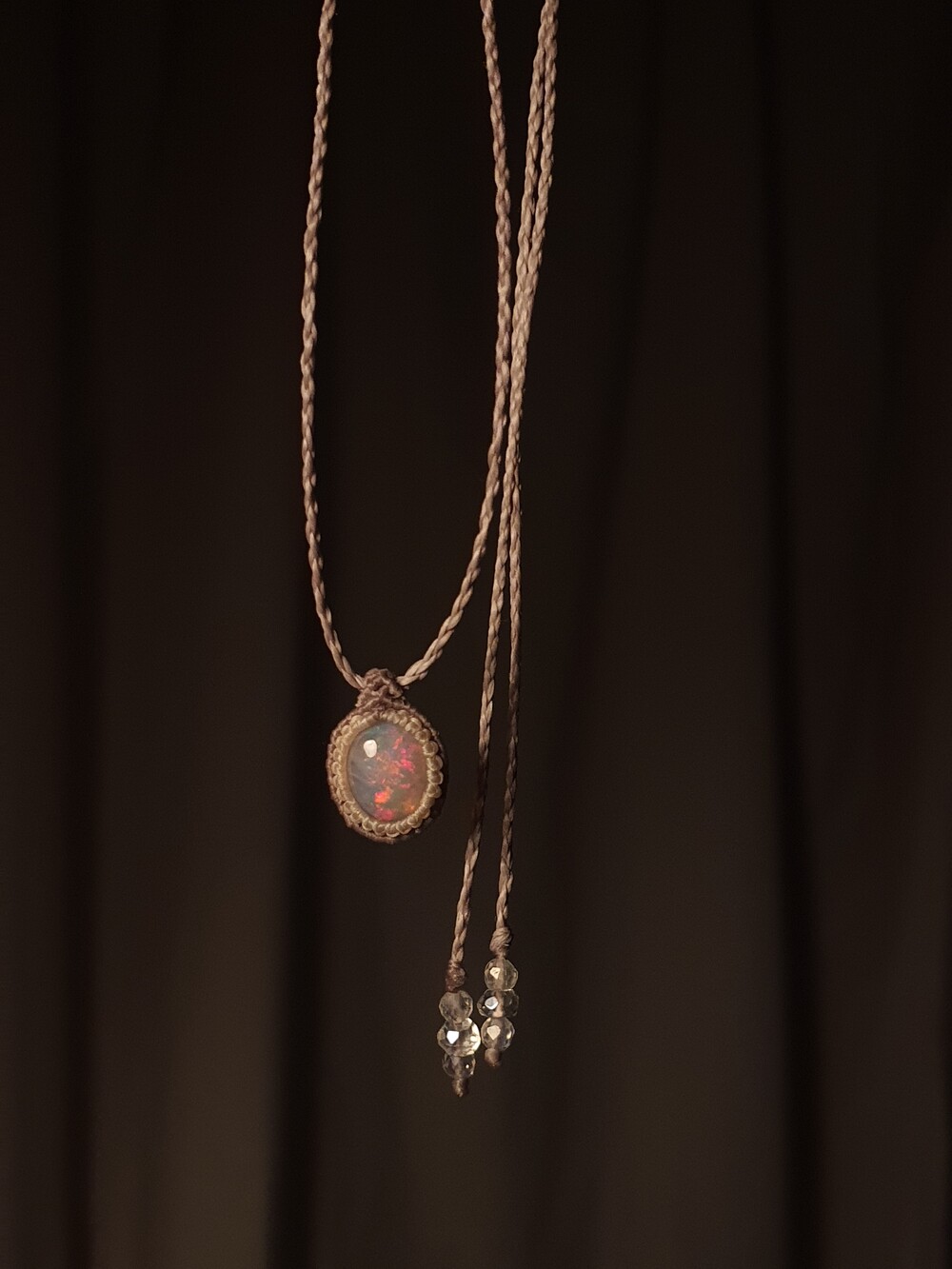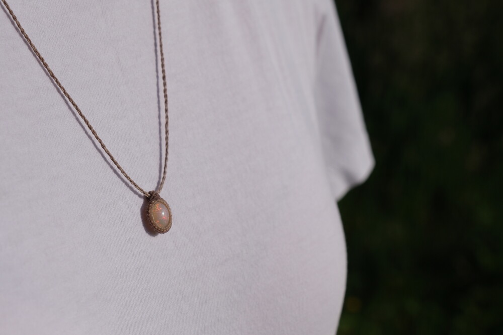 Ethiopian Opal double wrapping macrame necklace