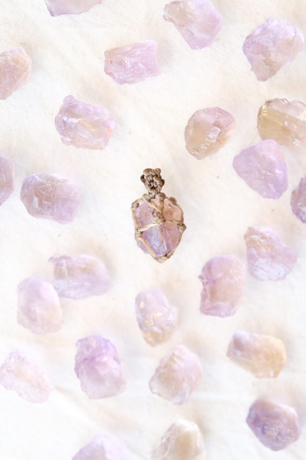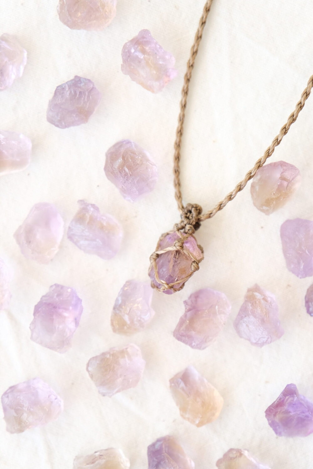 [Order-Made] Netting wrapping macrame necklace _ 시트린&자수정 믹스