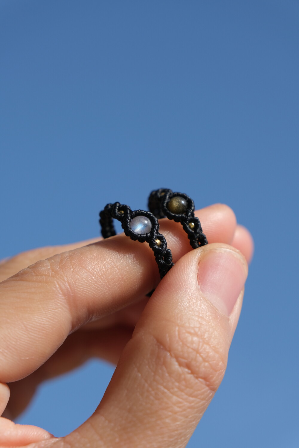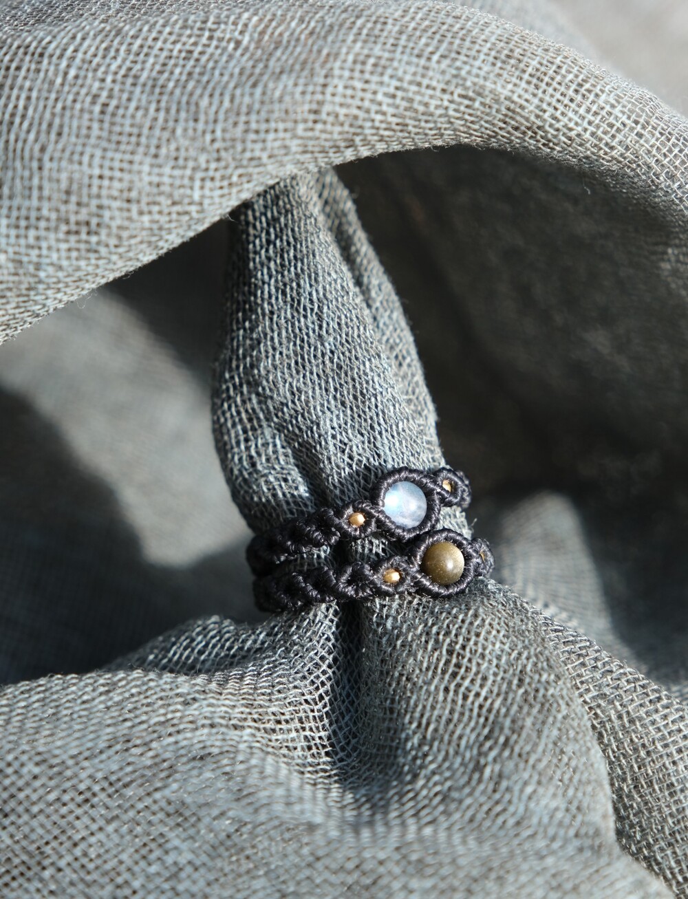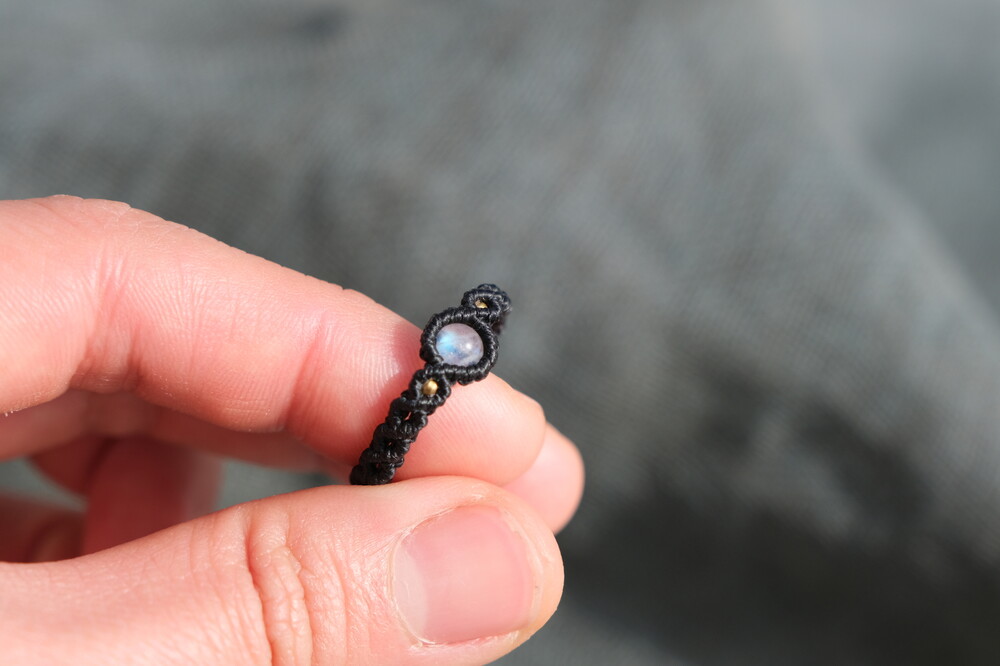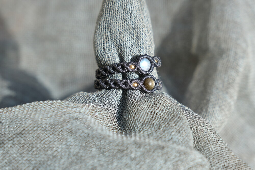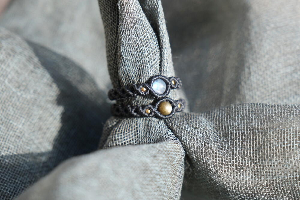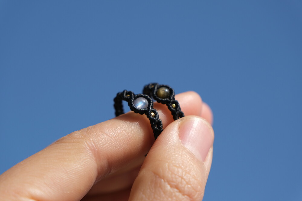 구슬원석과 비즈를 이용해 매듭반지를 한층 더 고급스럽게 만들어주었어요.
