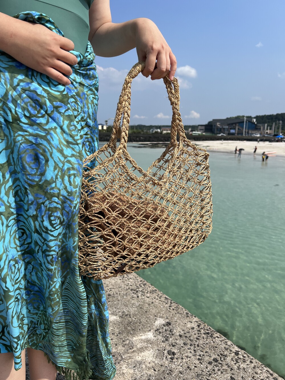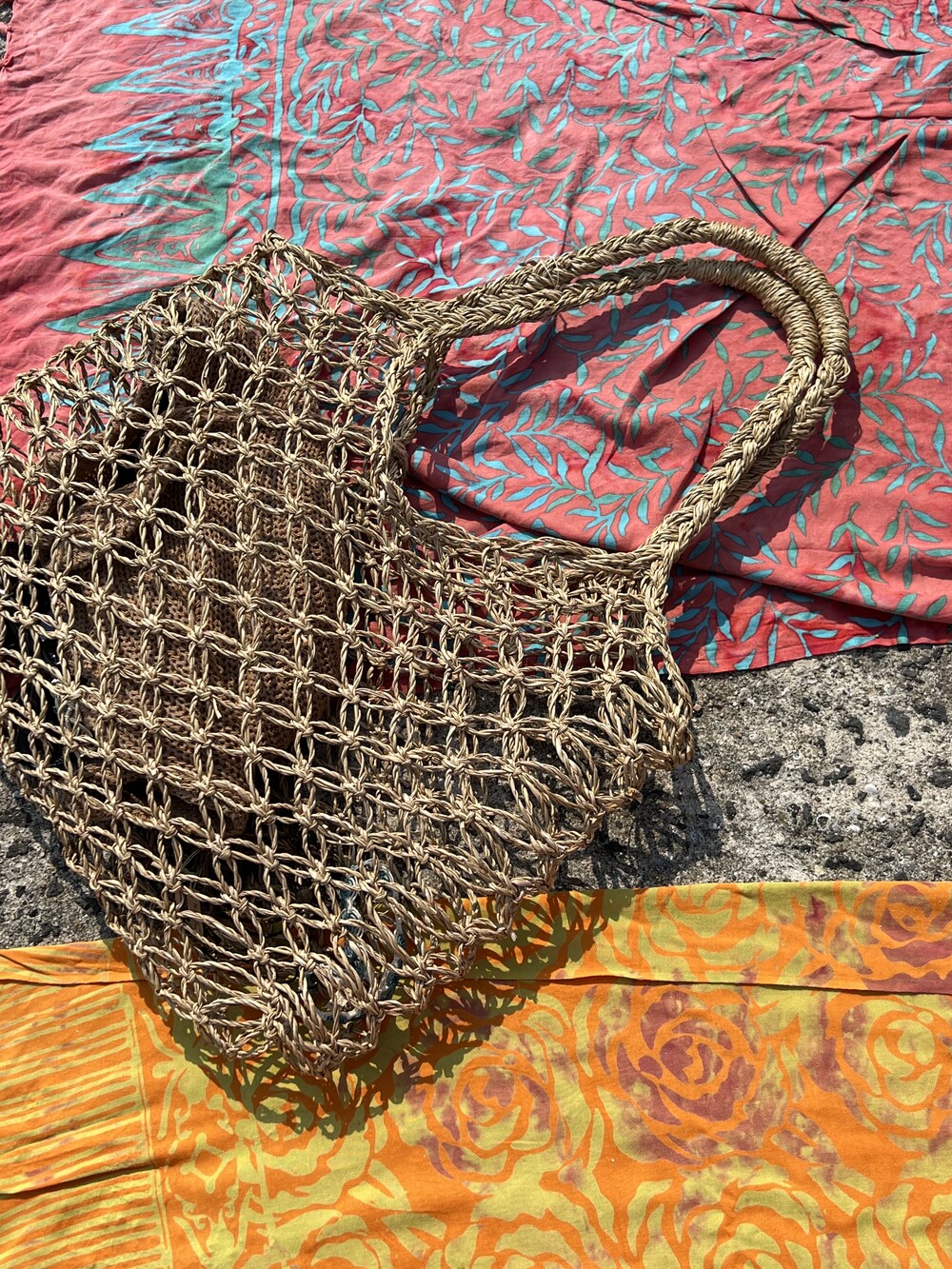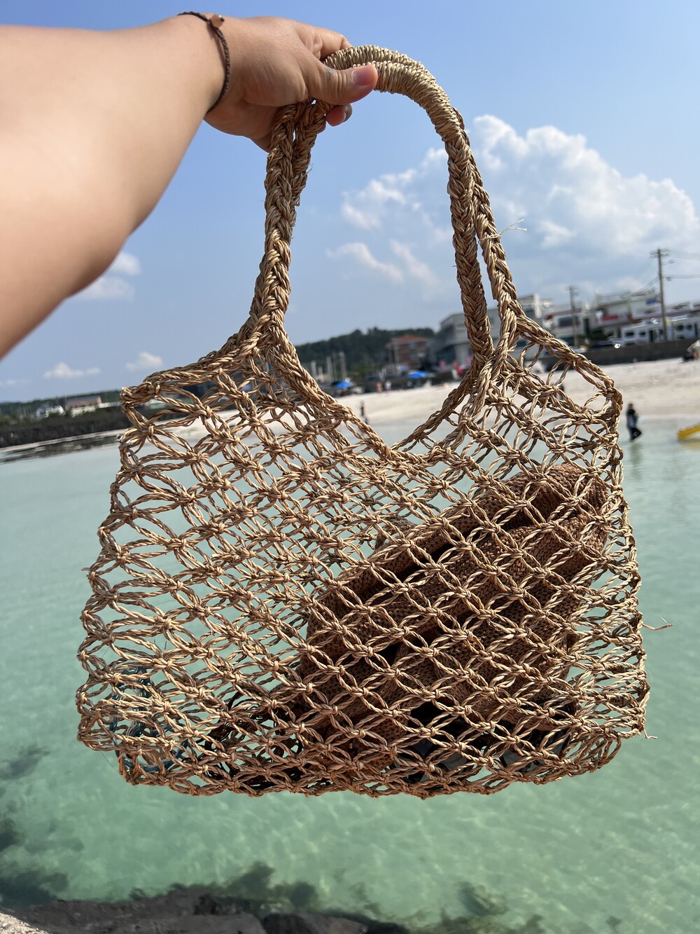 태국에서 만들어진 파피루스 소재의 핸드메이드 네트백입니다.