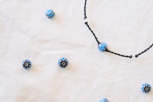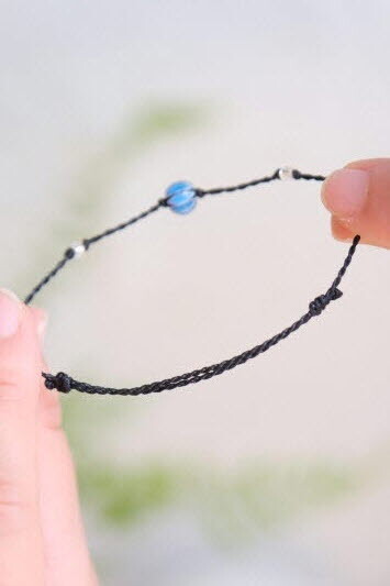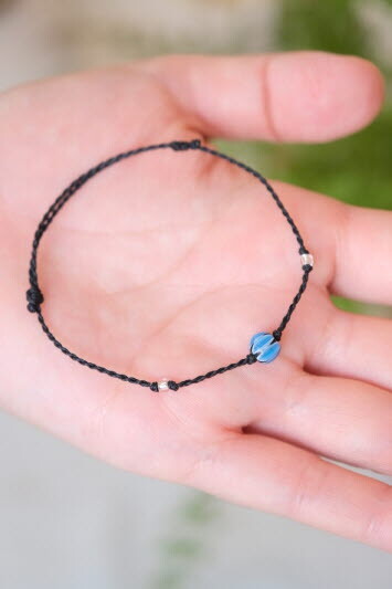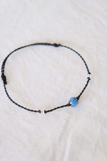 푸른빛의 유리 공예 비즈로 만든 팔찌입니다