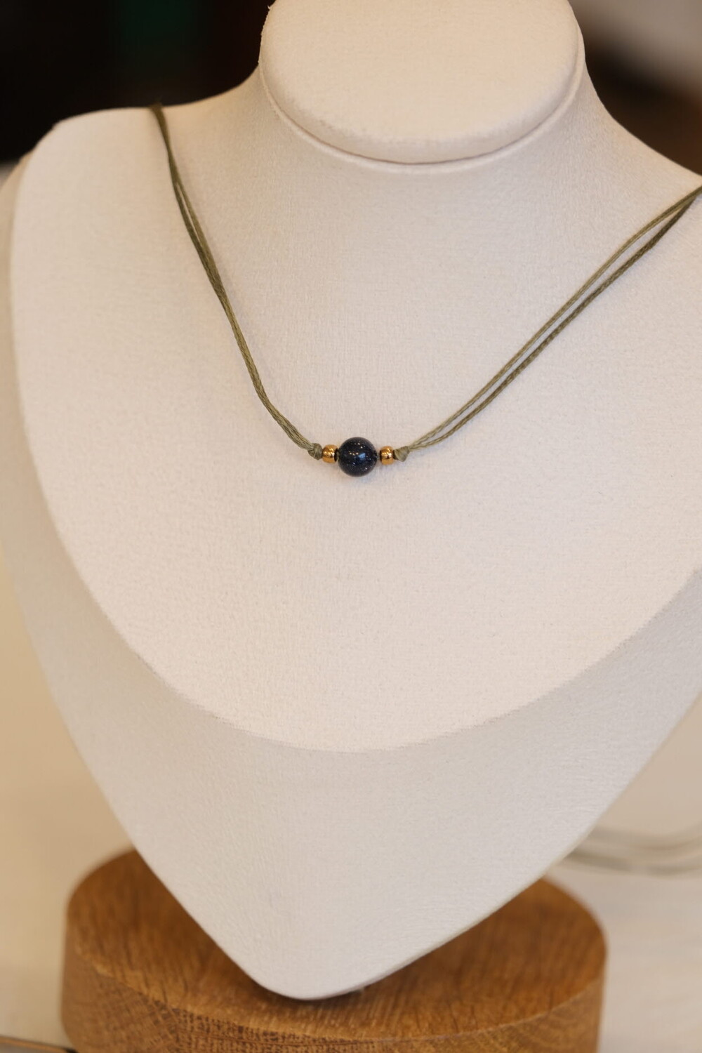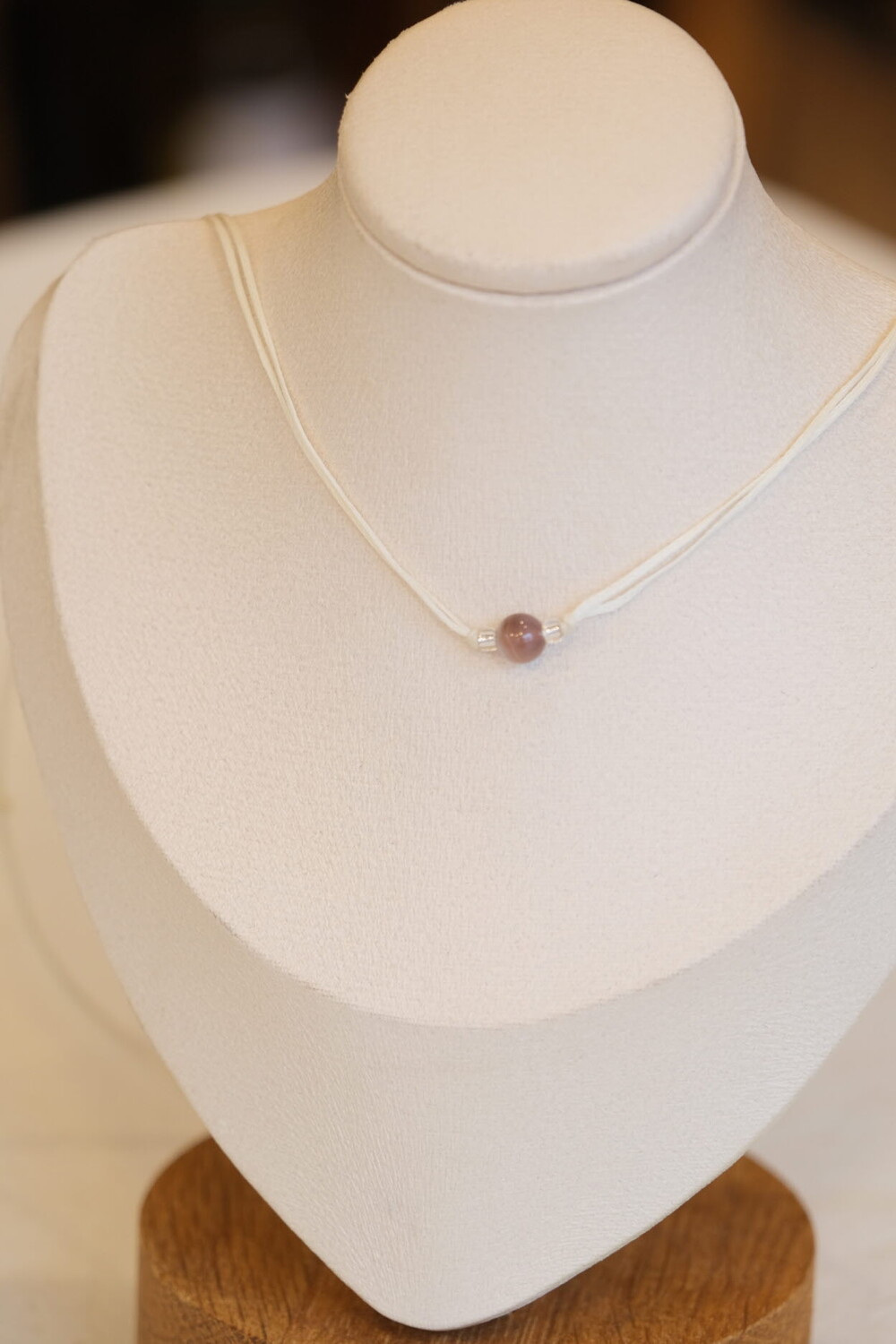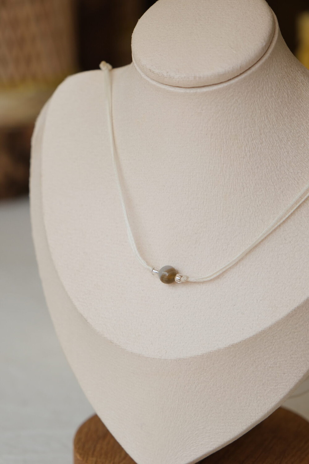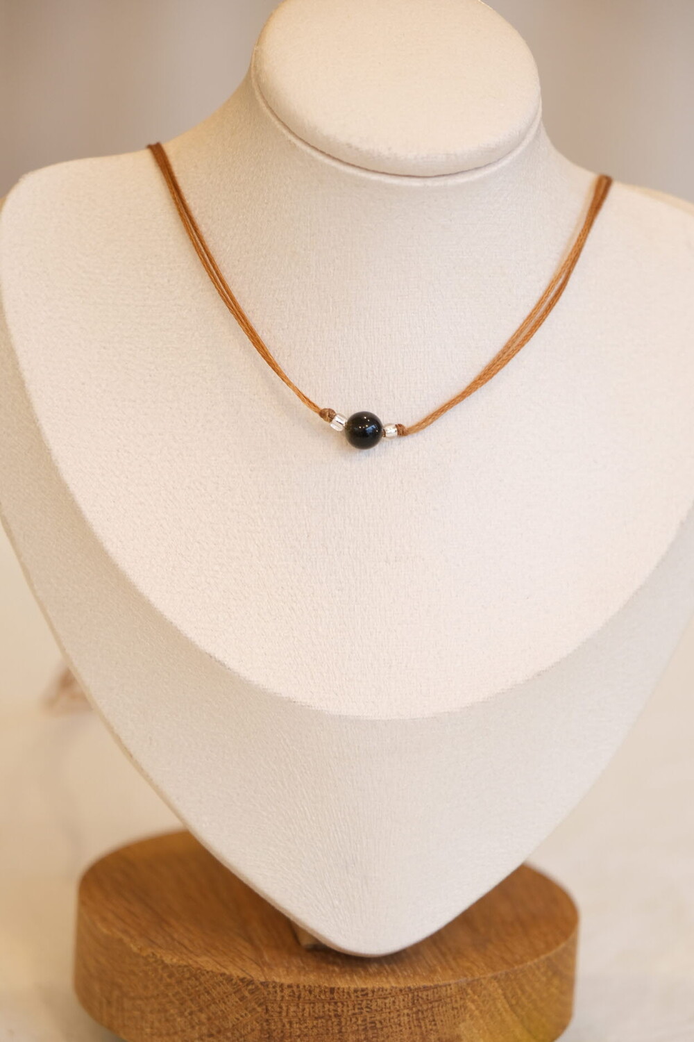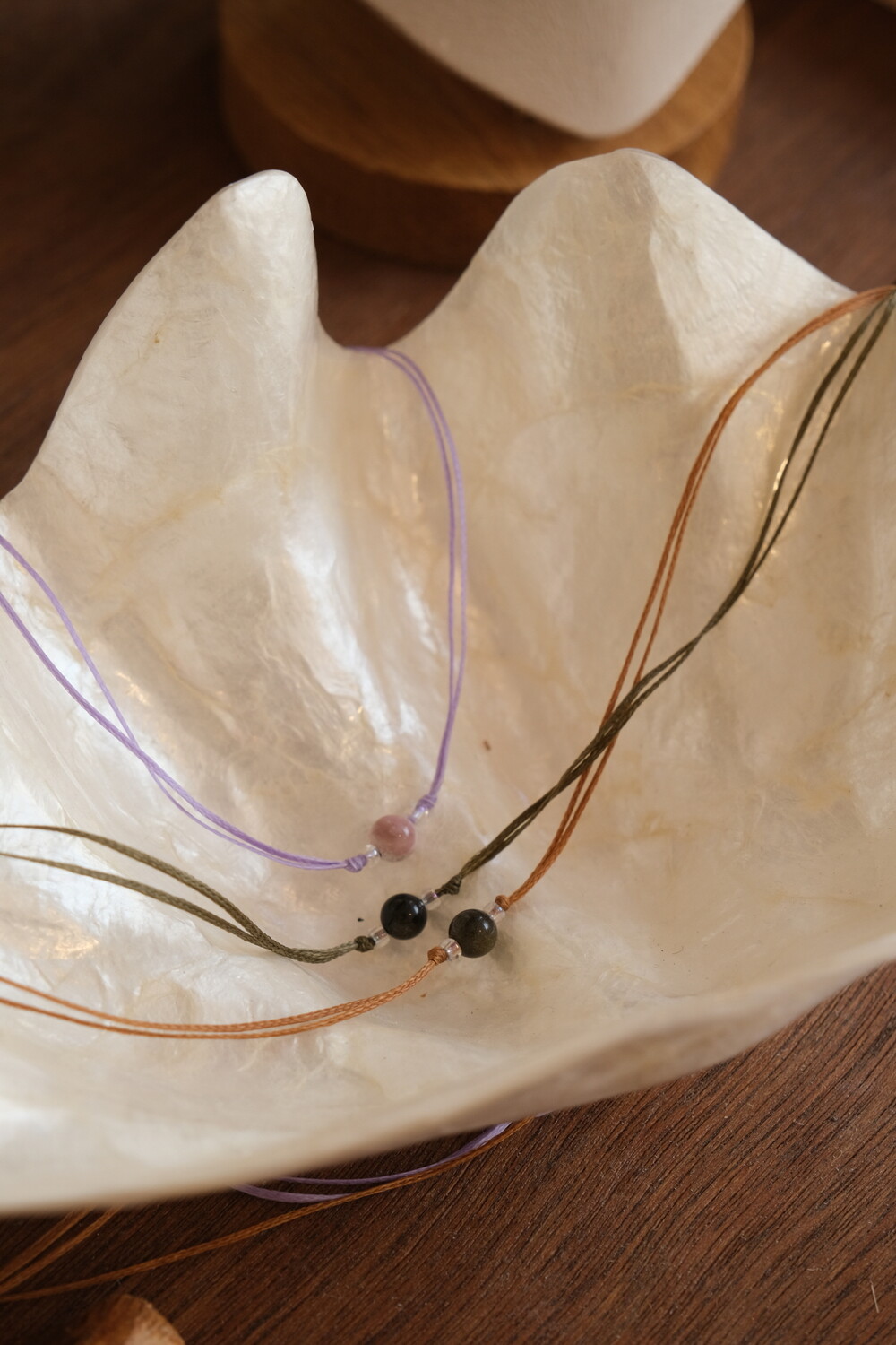 왁싱 코팅된 플랫 J코드, 천연석 플레인 볼 6mm, 3mm유리비즈로 제작되었습니다.