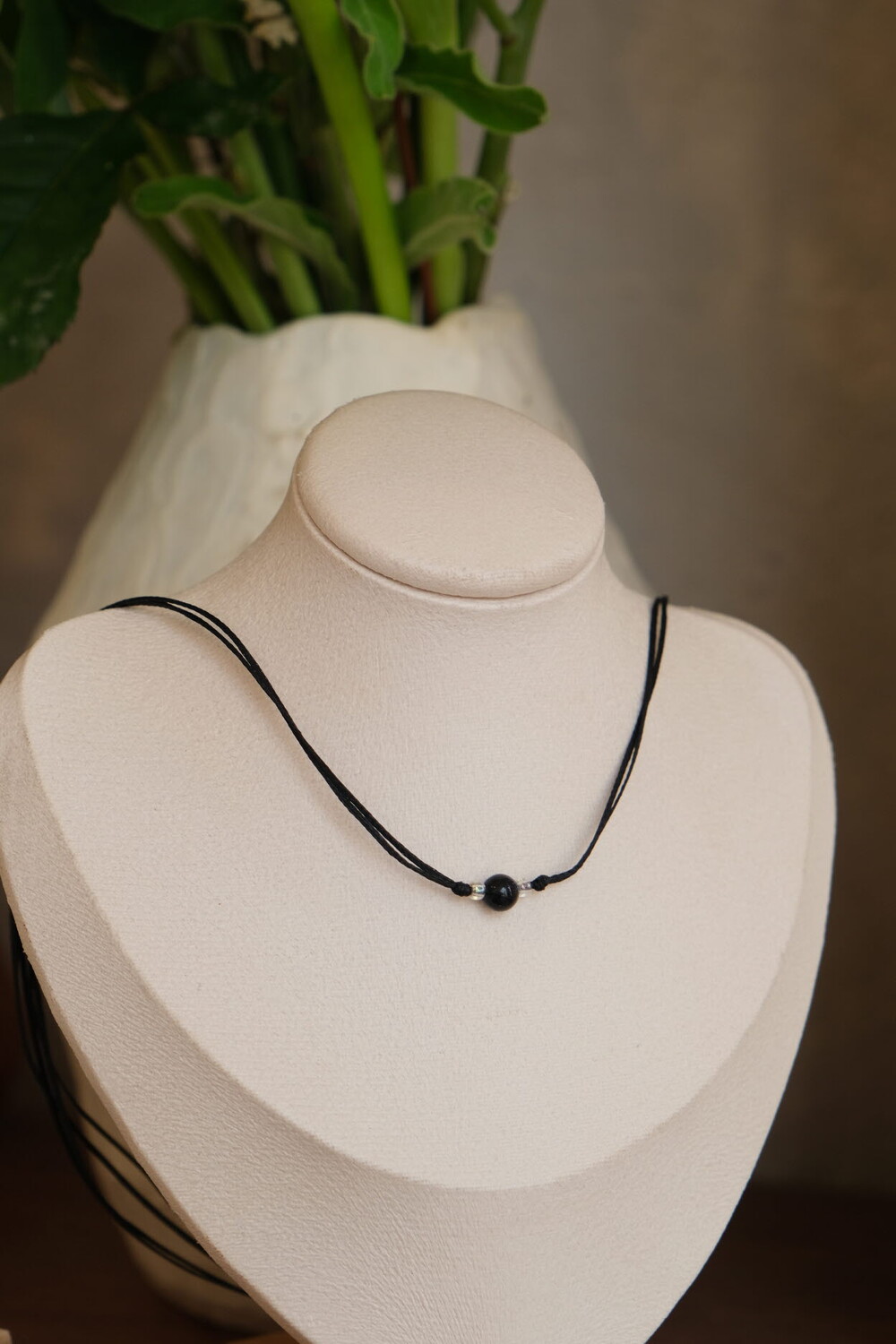 중앙에 원석과 비즈가 포인트인 심플 원석 초커입니다.