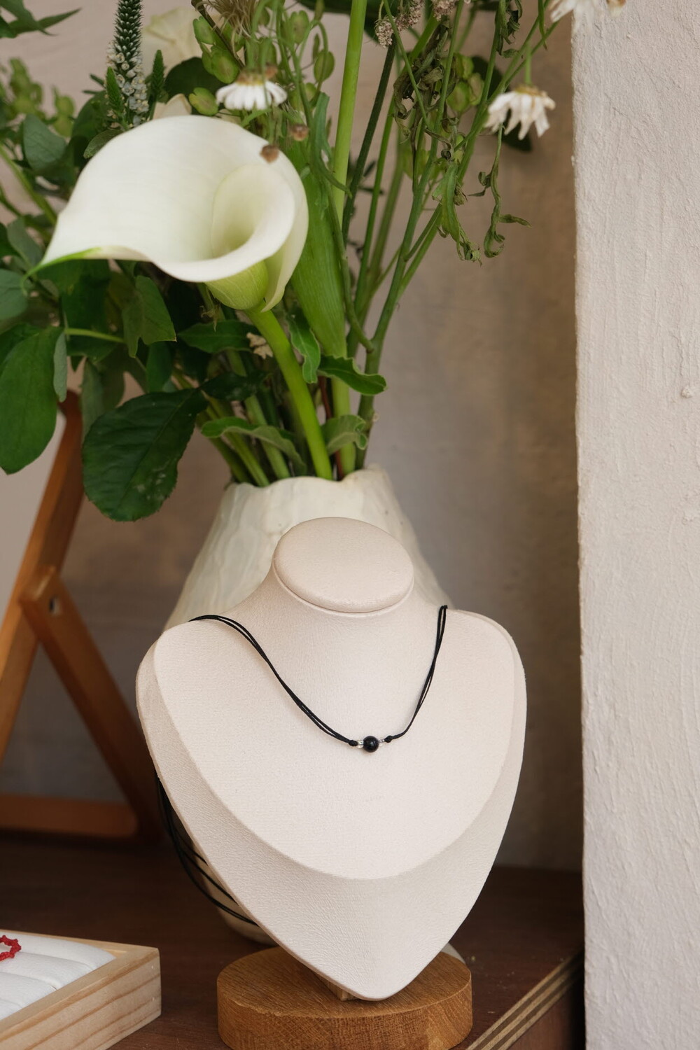 다양한 색상의 실과 원석으로 제작된 작품도 매장에 진열되어 있습니다.